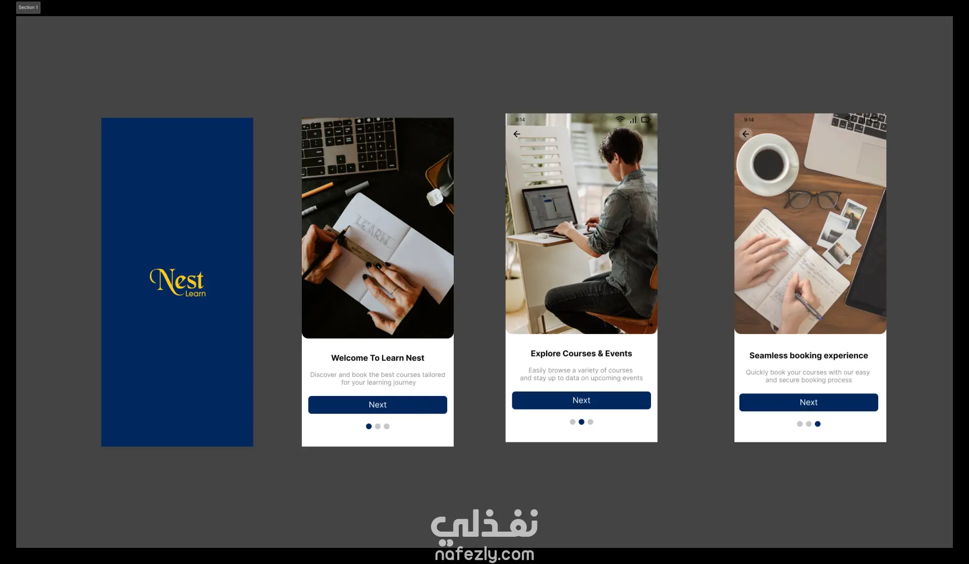 تصميم Landing Page وواجهات تسجيل الدخول لتطبيق Learn Nest