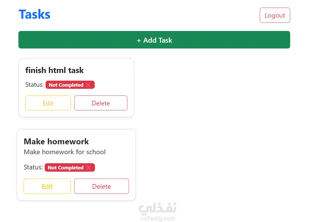 قمتُ بتطوير Front-end بسيط ل تطبيق Task Manager لتمكين المستخدمين من إضافة، تعديل، وحذف المهام اليومية بسهولة وفعالية. المشروع يبرز قدرتي على تصميم واجهة مستخدم تفاعلية وجذابة مع التركيز على تجربة المستخدم وسهولة التصفح.