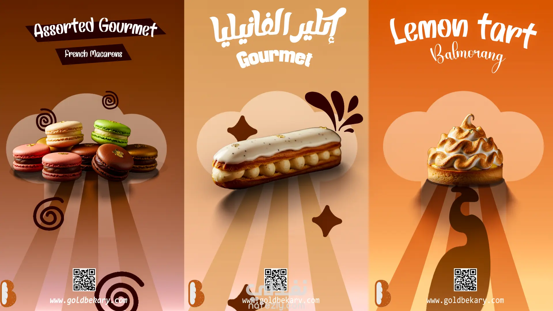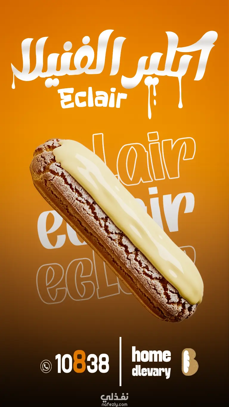 تم استخدام خلفية بدرجات البرتقالي الدافئة لتعكس أجواء المخبوزات وتُشعر المشاهد بالدفء والشهية.