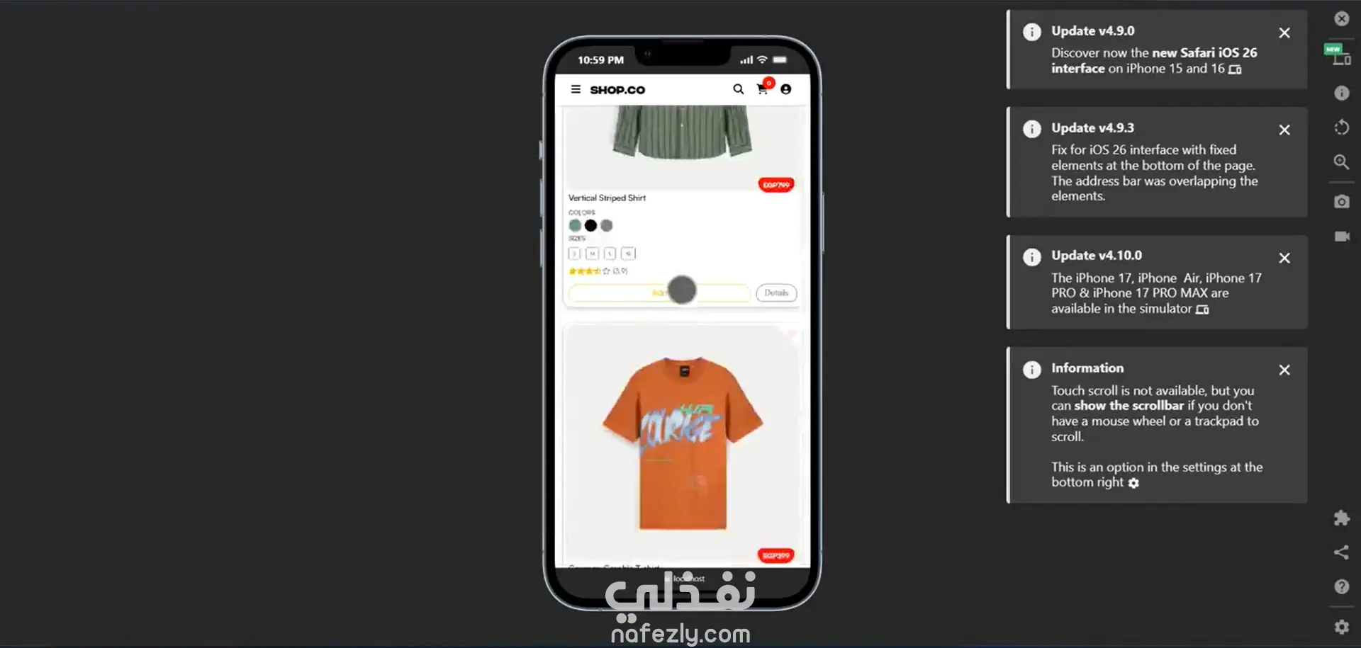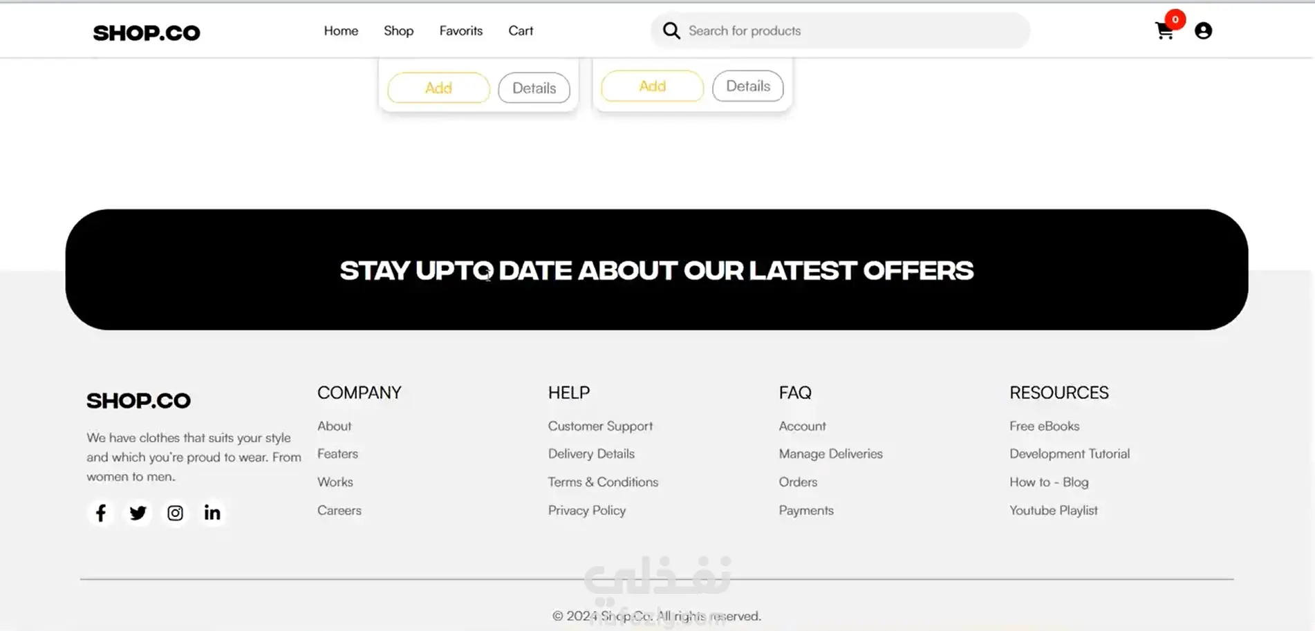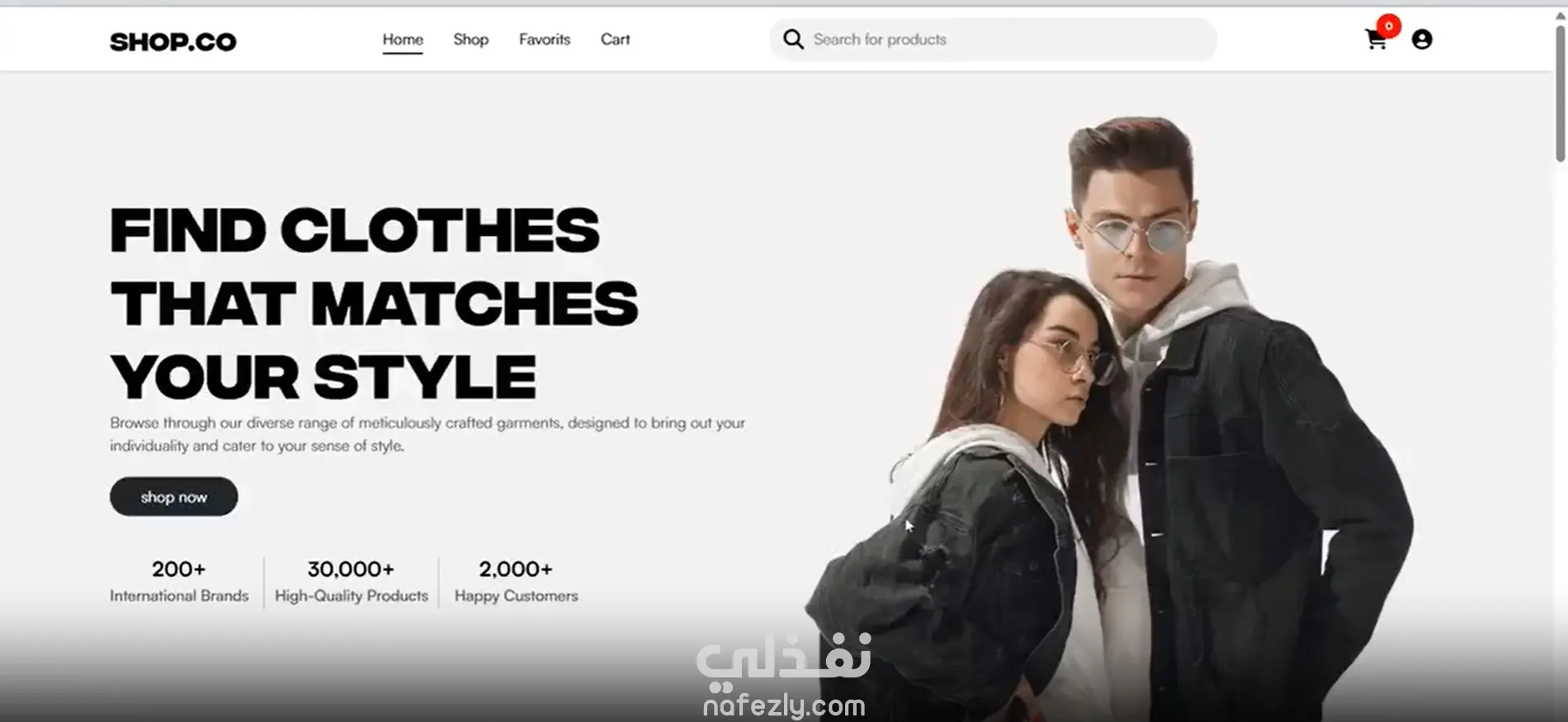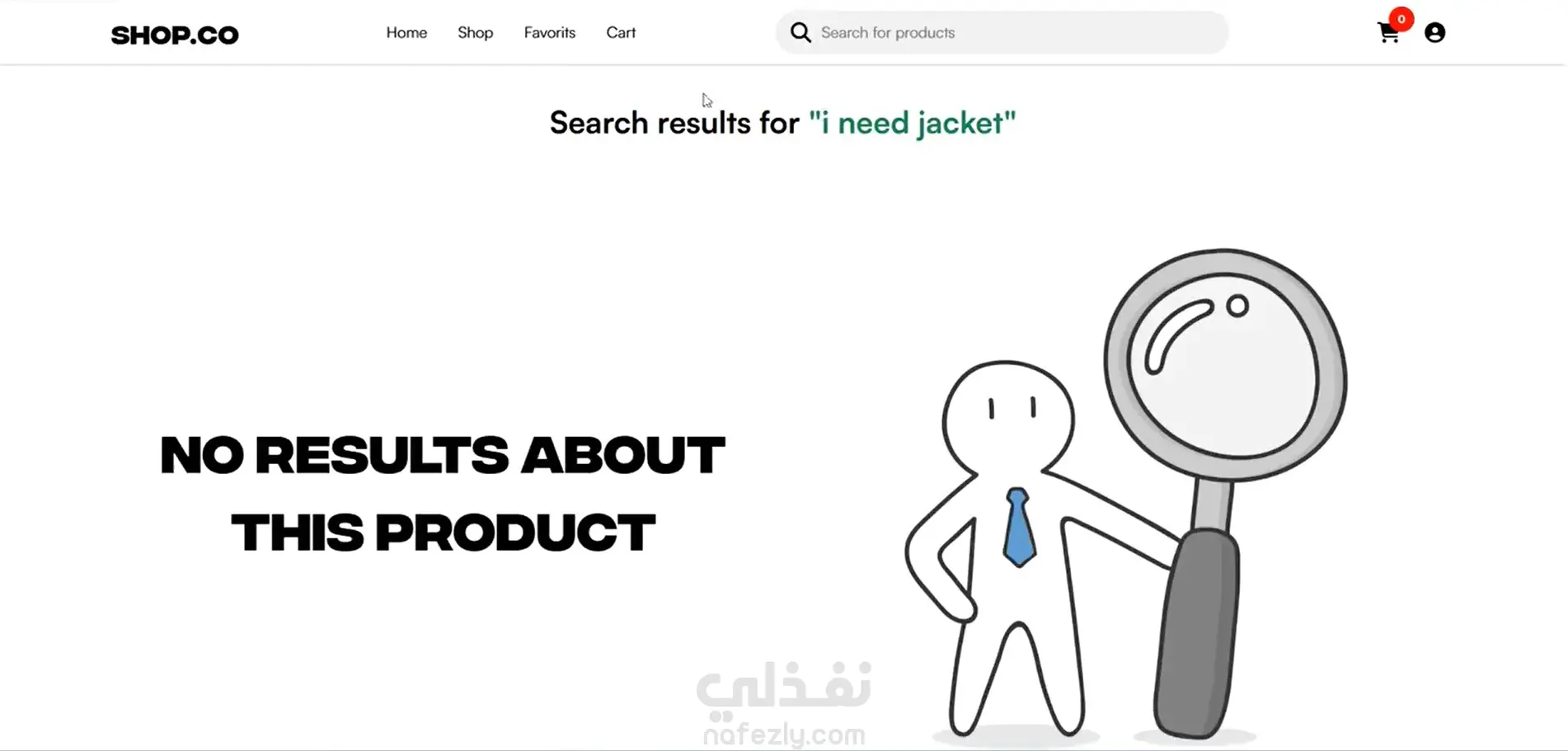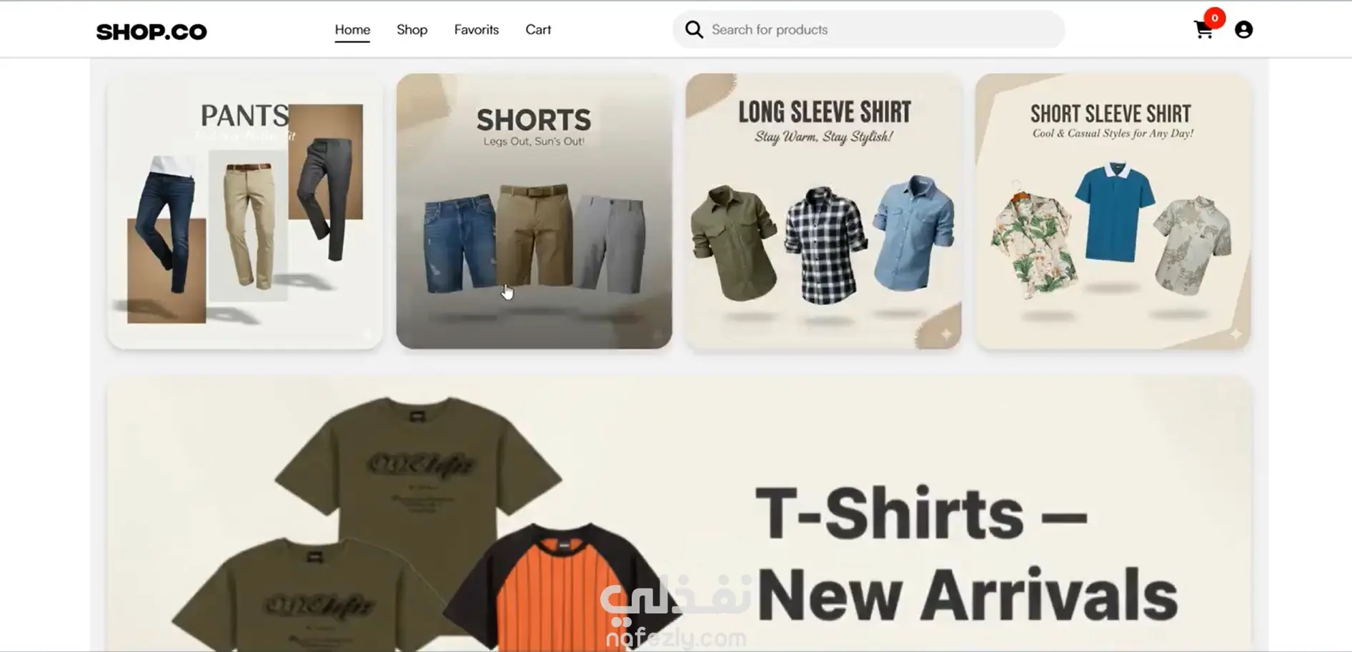 نظام لبيع الملابس يشتمل على فلاتر متقدمة حسب: الفئة (CATEGORY)، المقاس (SIZE)، اللون (COLOR)، والسعر (PRICE). يتضمن النظام أيضًا بحثًا ذكيًا مدعومًا بالذكاء الاصطناعي، وإمكانية إضافة المنتجات إلى المفضلة (Add to Favorite) أو سلة التسوق (Add to Cart)، وعرض تفاصيل منتج واحد، وعرض جميع المنتجات ضمن فئة معينة، بالإضافة إلى إتمام عملية الشراء (Make Order)."