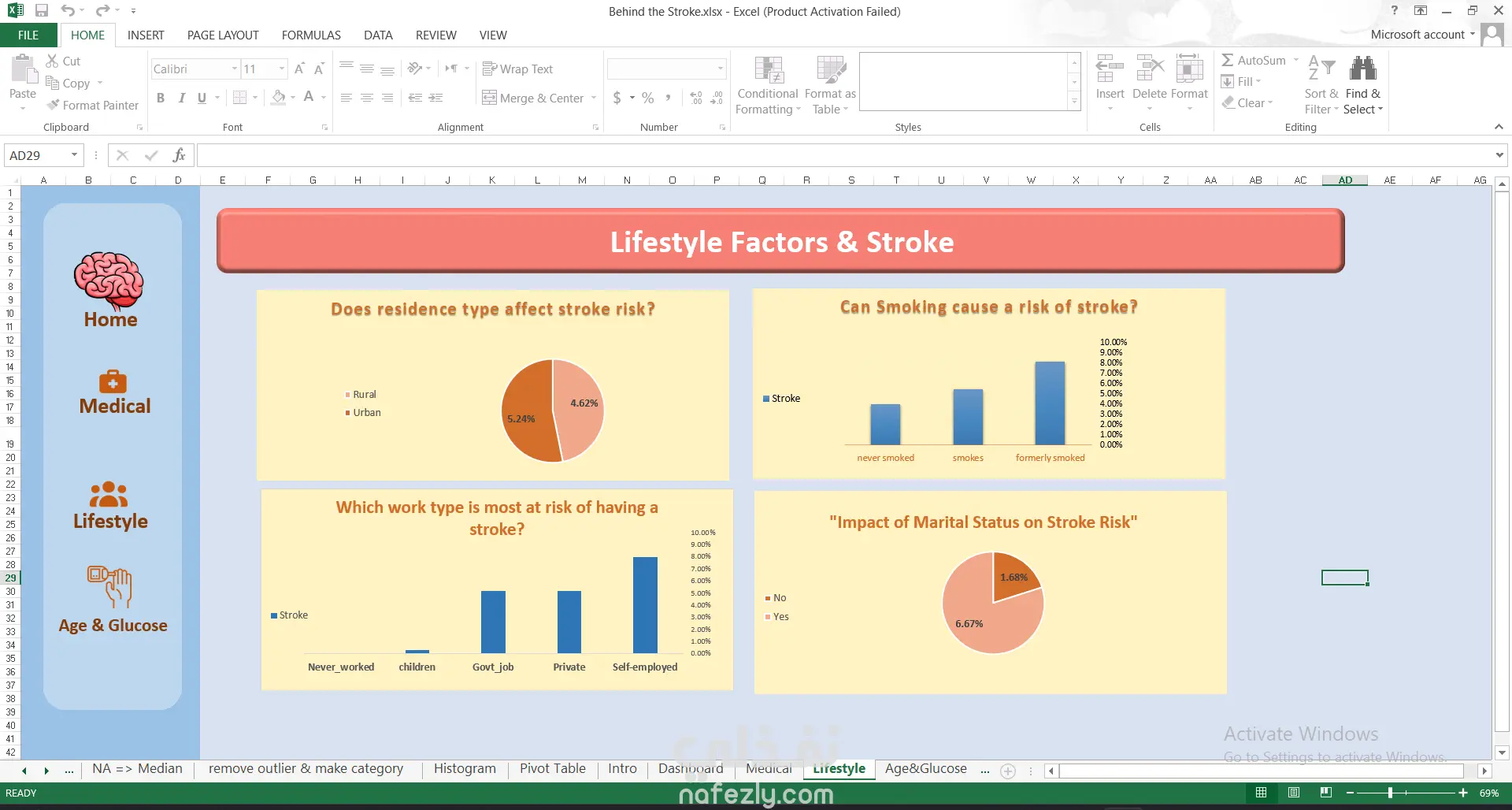 في هذا المشروع قمت بتصميم Visualization متكاملة داخل Excel باستخدام الرسوم البيانية المتقدمة، مع تنظيم البيانات ومعالجتها بطريقة احترافية، ليظهر التقرير النهائي بشكل جذاب وسهل التصفح.