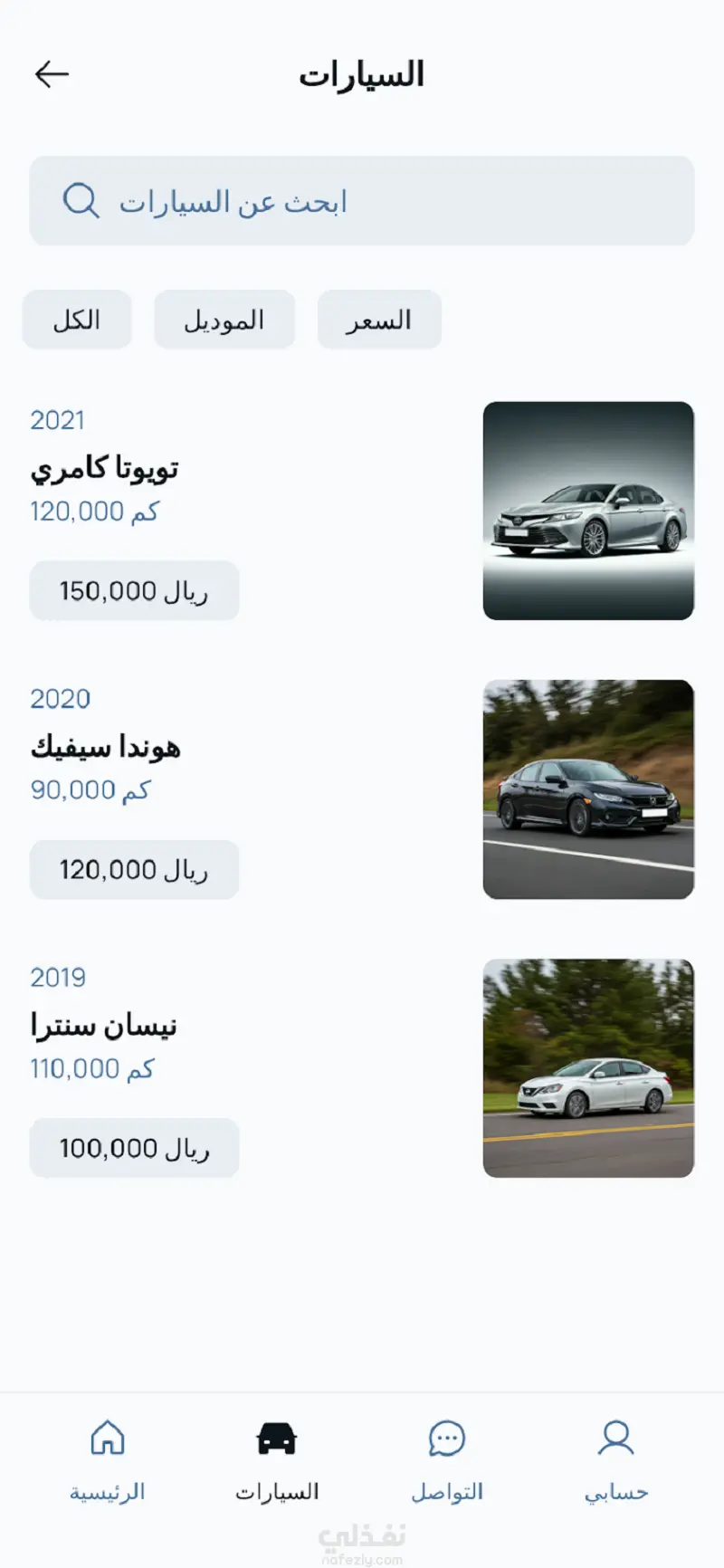 عمل واجهة المستخدم لتطبيق معرض سيارات
