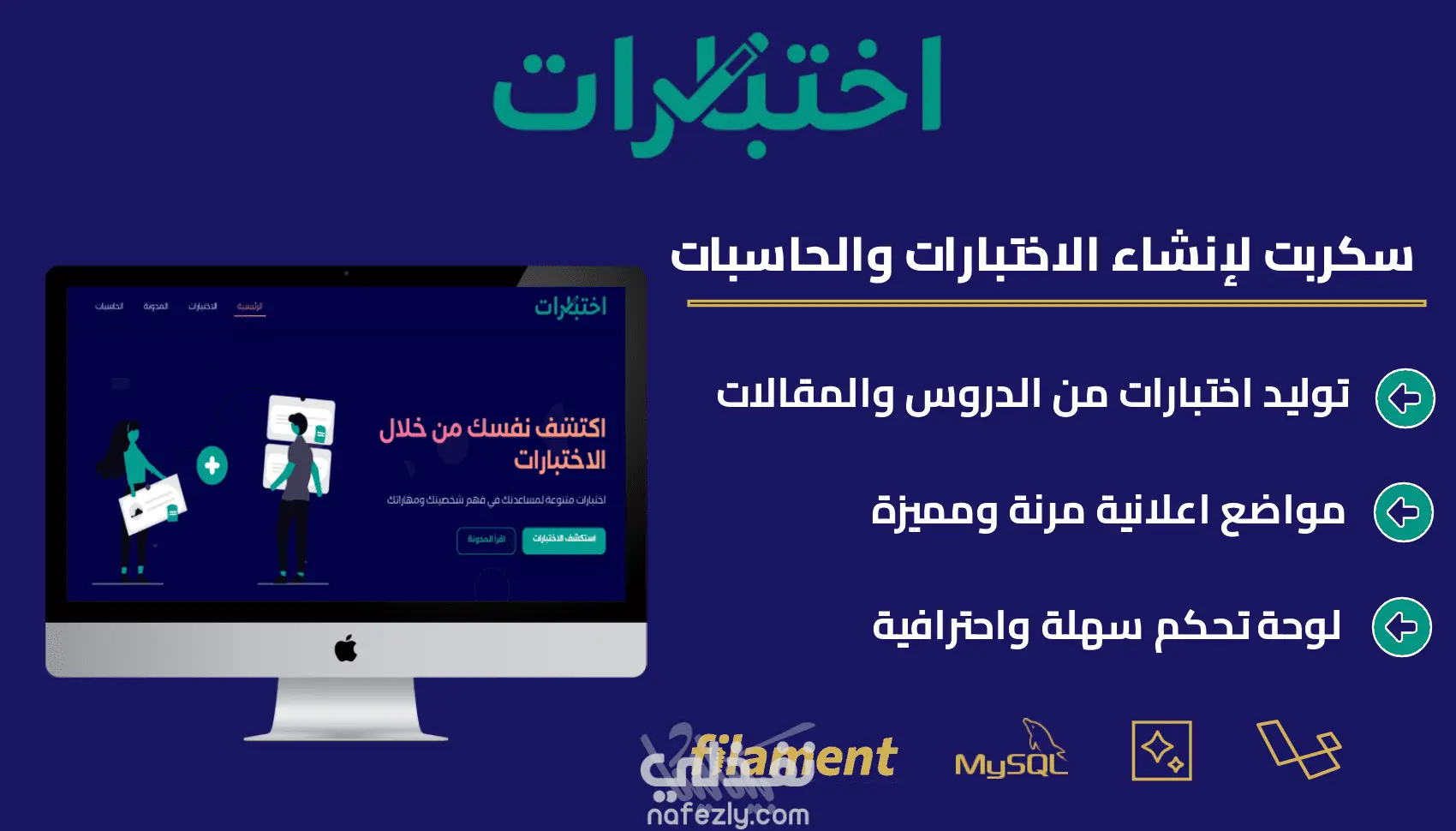 نظام متكامل لإدارة الاختبارات التفاعلية مبني على Laravel و Filament. يتيح لك إنشاء اختبارات معقدة مع أسئلة متعددة الأنواع، خيارات متعددة، ونظام مرن لتحديد النتائج. أبرز ما يميز السكربت هو دعمه لتوليد الاختبارات تلقائياً بالذكاء الاصطناعي؛ فقط قم بلصق الدرس أو المحتوى، وسيقوم النظام بإنشاء اختبار كامل يشمل الأسئلة، الإجابات، الدرجات، وترتيبها داخل لوحة التحكم مباشرة