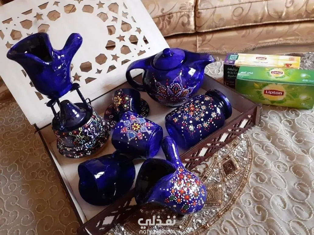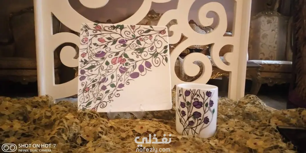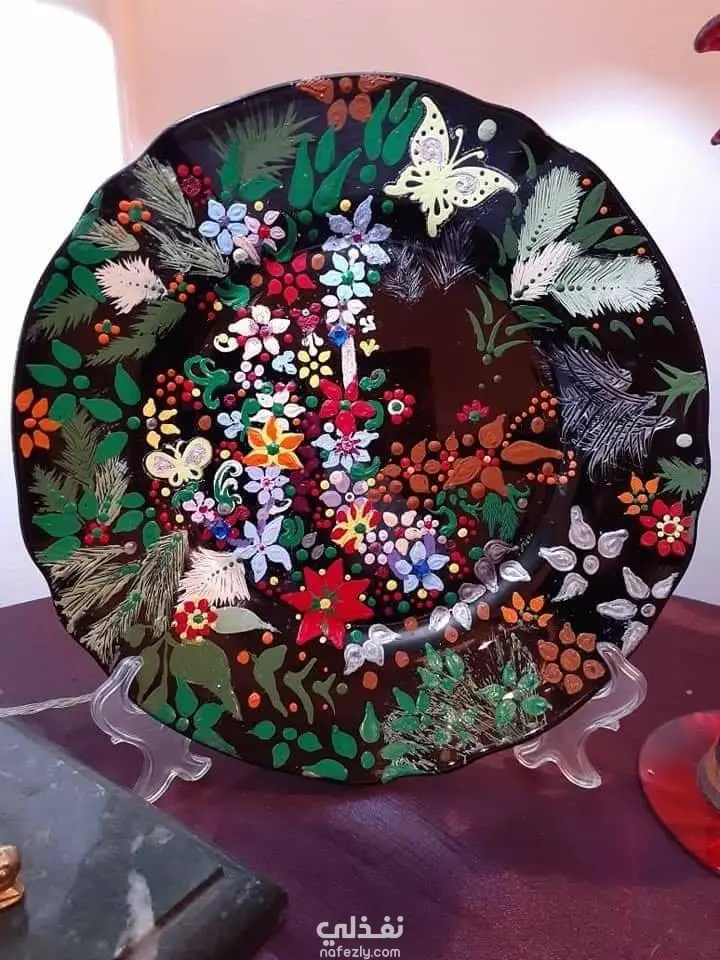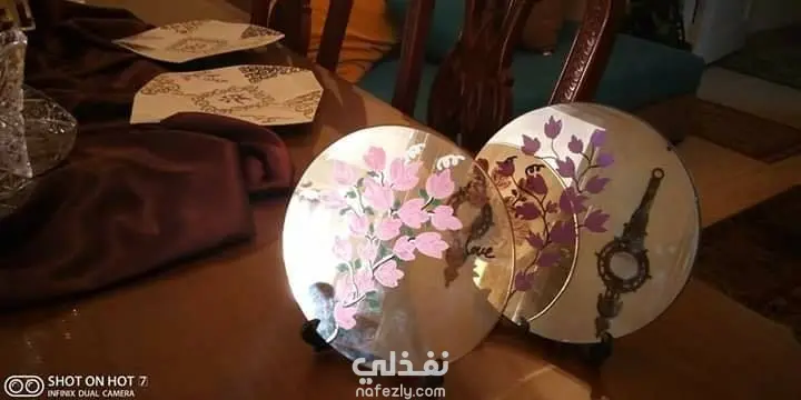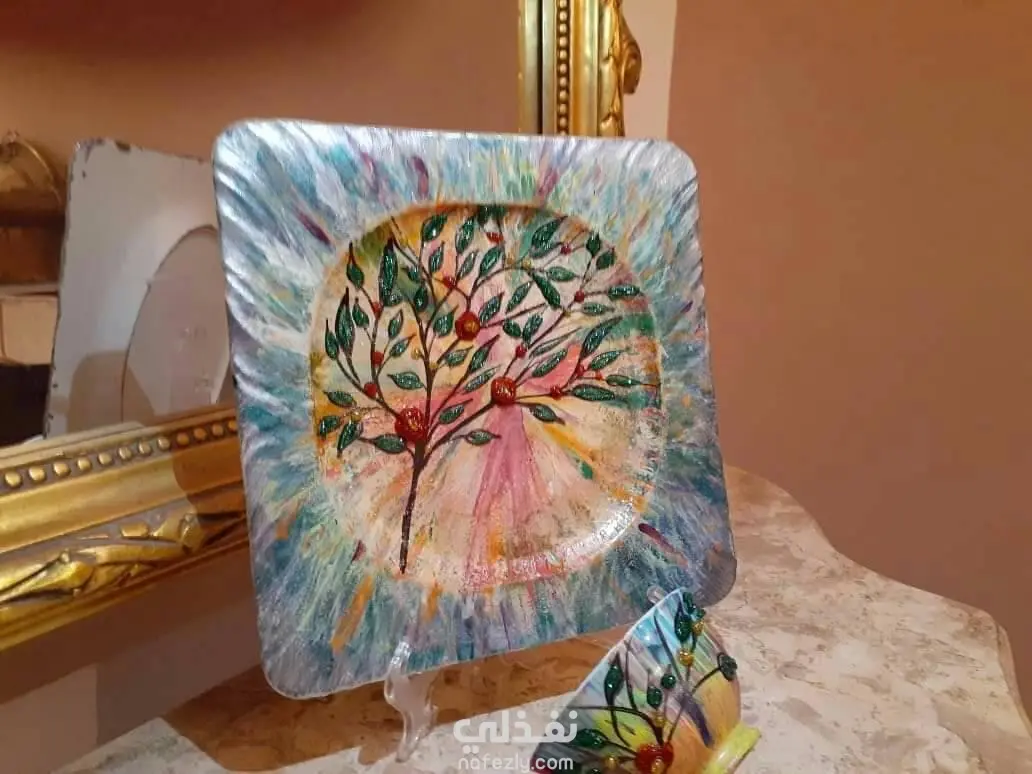 تصميم وتنفيذ لوحات ورسومات يدوية على الأطباق والمرايا