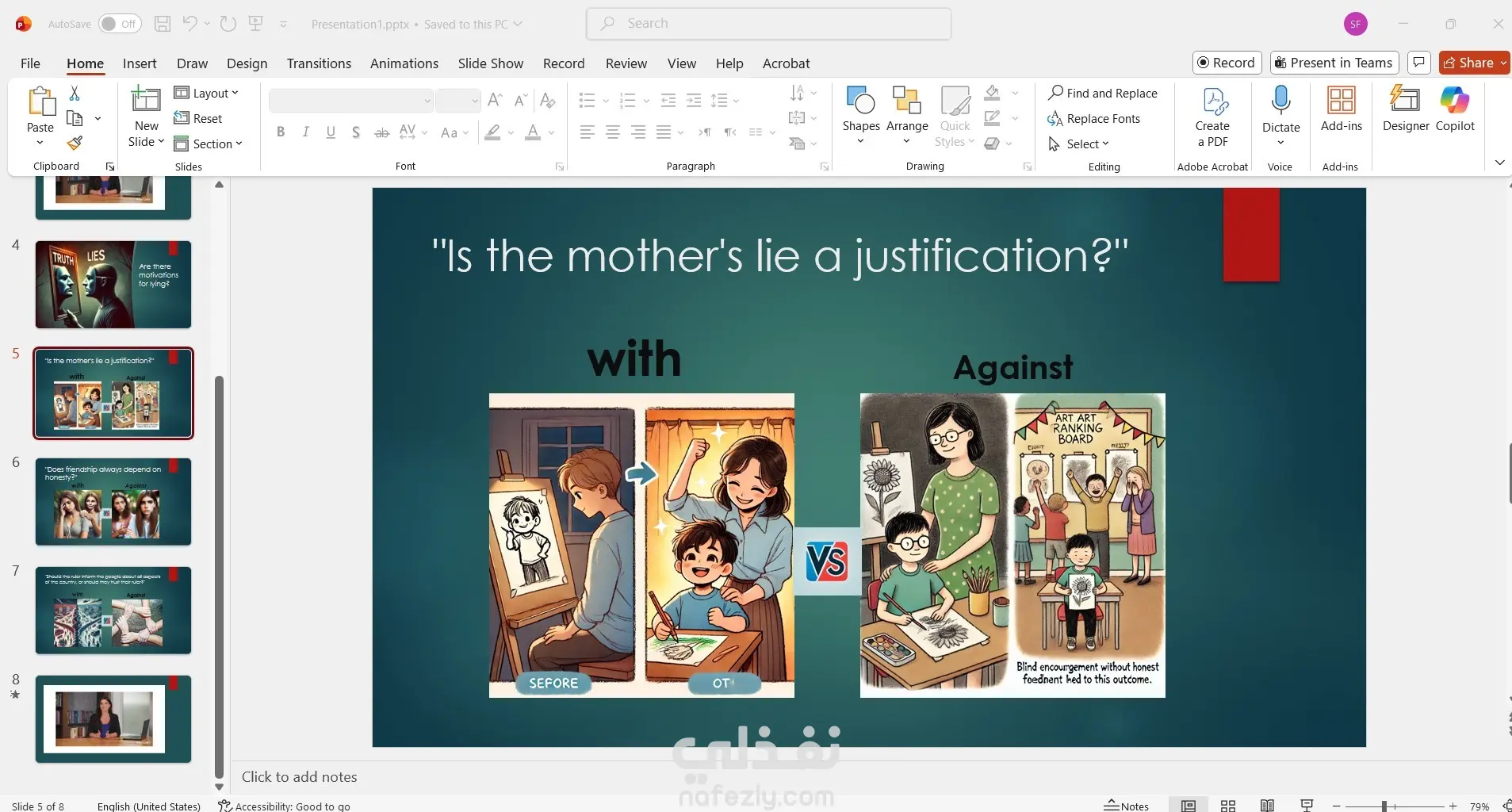 I created a presentation designed as a dialogue between two people, similar to what you would see in a television show. To make it more engaging and realistic, I used AI technology to generate the voice of the host, giving it the style and tone of a professional TV presenter. The AI-generated host introduces the topic, asks questions, and interacts naturally with the second speaker, creating a smooth, dynamic conversation. I then completed the rest of the presentation in English, maintaining the same professional and broadcast-like style to ensure a cohesive and polished final result. This approach adds creativity, clarity, and a modern touch to the presentation, making it feel like a real TV segment rather than a traditional slide show