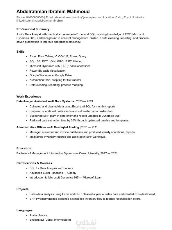 أقدّم خدمة إعداد وتنسيق سيرة ذاتية احترافية متوافقة 100% مع أنظمة تتبع المتقدمين (ATS)، لضمان اجتياز الفلاتر الآلية والوصول مباشرة ليد مسؤول التوظيف. أعمل على تحليل خبراتك ومهاراتك وصياغتها بطريقة قوية وواضحة، مع استخدام الكلمات المفتاحية المناسبة ومراعاة معايير التنسيق التي تعتمدها الشركات العالمية. النتيجة ملف جاهز، أنيق، مقروء آليًا وبشريًا، ويزيد فرصك في الظهور والقبول ضمن المنافسة الوظيفية.