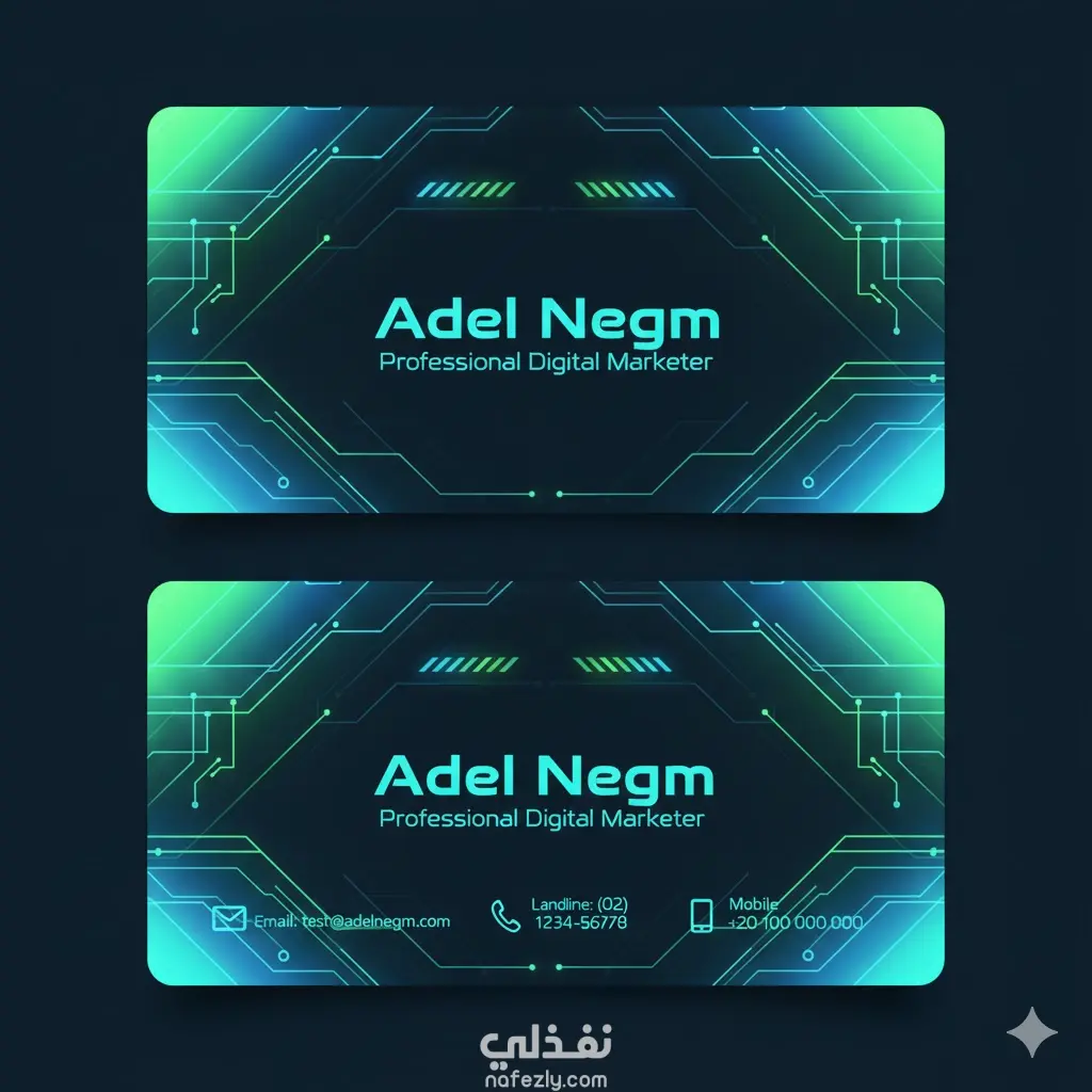تعرض هذه الصورة تصميم بطاقة أعمال احترافي يتميز بتنسيق عصري وألوان جذابة تعكس الهوية البصرية للشركات والأفراد. يظهر في التصميم Layout نظيف ومنظم يعزز من سهولة القراءة ويبرز الاسم، الشعار، ومعلومات الاتصال بوضوح، مما يجعل البطاقة مثالية لأصحاب الأعمال، المصممين، والمسوقين الذين يبحثون عن Business Card Design مميز يعبر عن الاحترافية والهوية المؤسسية. هذا النموذج يعتبر مثالًا رائعًا لـ Minimal Business Card Template و Professional Brand Identity، ويمكن استخدامه كمصدر إلهام لأي شخص يرغب في إنشاء Corporate Business Card يتميز بالأناقة والجاذبية. التصميم مُعدّ بدقة ليحقق أعلى مستوى من Branding Quality ويعكس صورة قوية وموثوقة أمام العملاء.