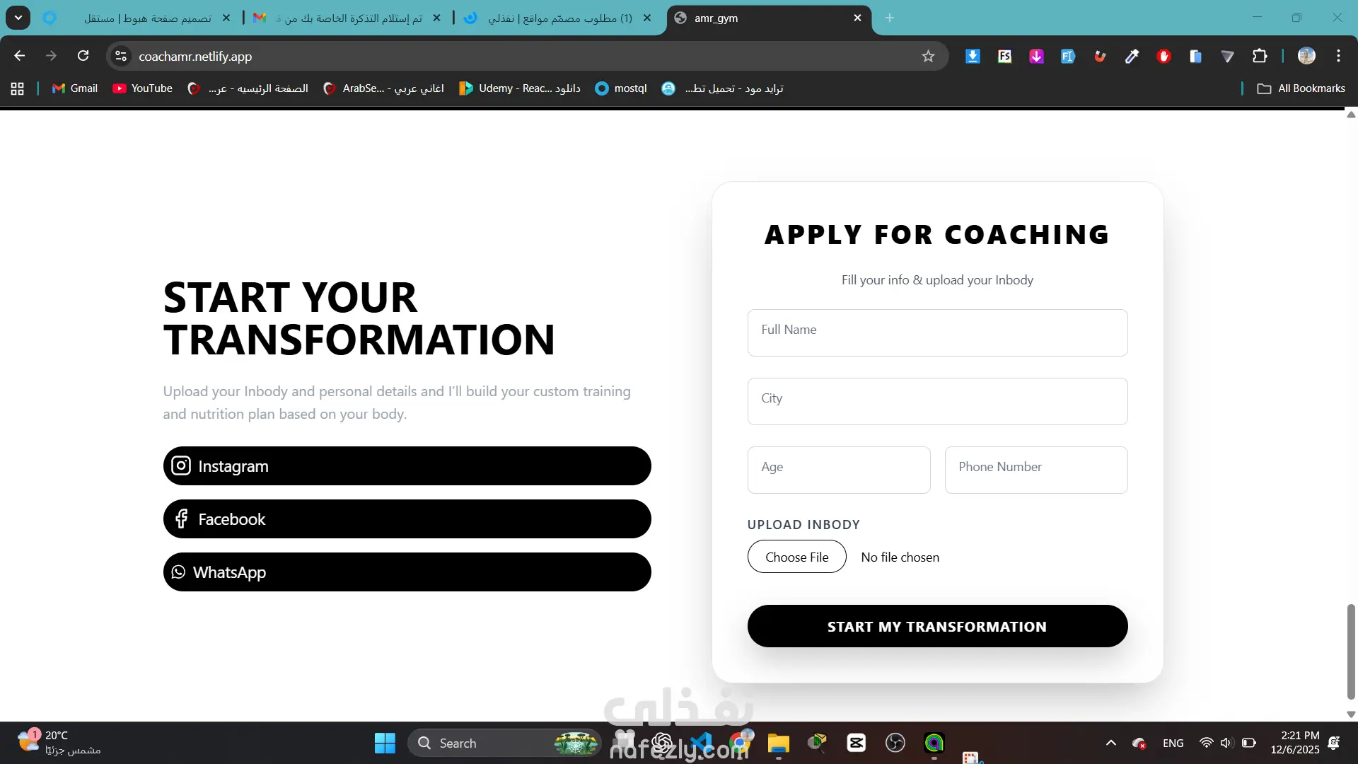 Fitness & Gym Coaching Website Developer