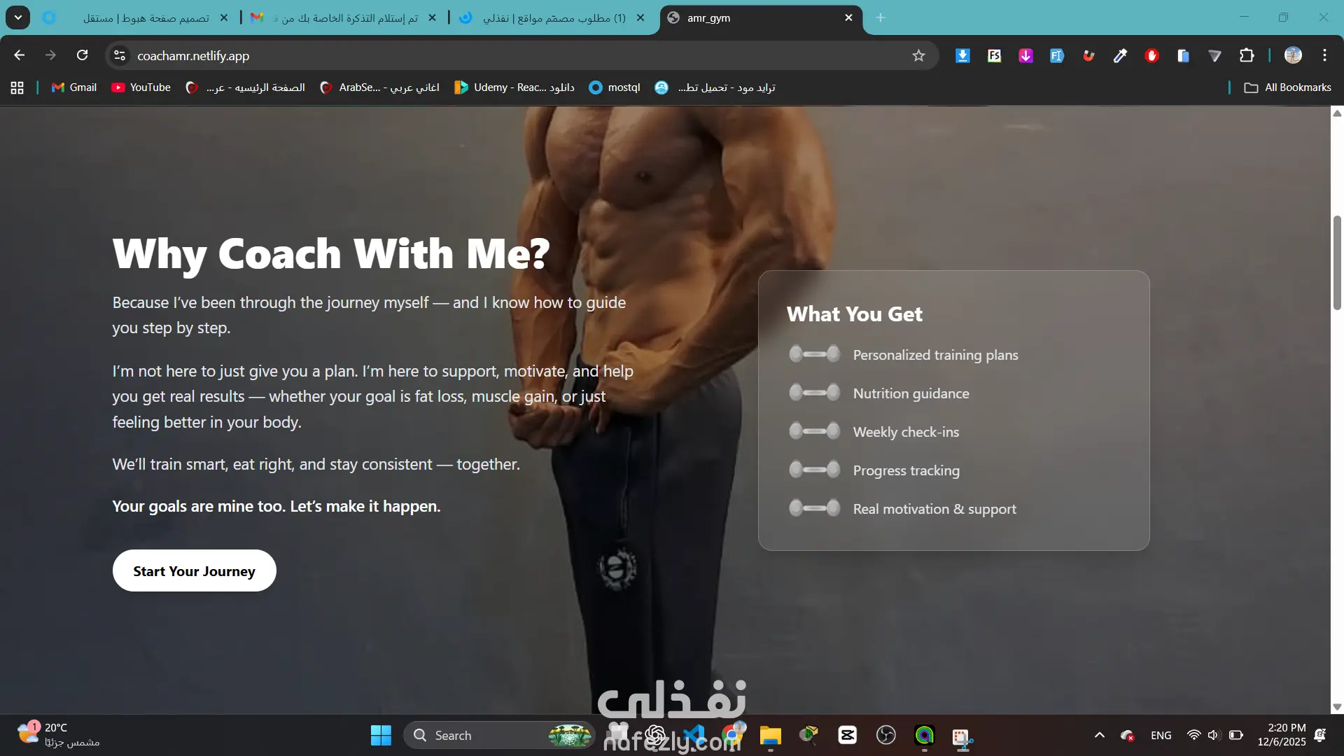 I design and develop professional gym and fitness coaching websites that help coaches build trust, attract clients, and convert visitors into real transformations. I specialize in creating fast, responsive, and conversion-focused websites for personal trainers, gym owners, and online coaches — from landing pages to full coaching platforms. What I deliver: Modern, mobile-first gym websites optimized for speed and performance Clear presentation of coaching programs, transformations, and pricing Strong call-to-action sections (Book Now, Join Program, Free Consultation) SEO-friendly structure to help coaches rank and get more leads Deployment on reliable platforms (Netlify) for fast loading worldwide My goal is not just design — it’s results. I build websites that reflect your brand, motivate users, and turn visitors into committed clients.