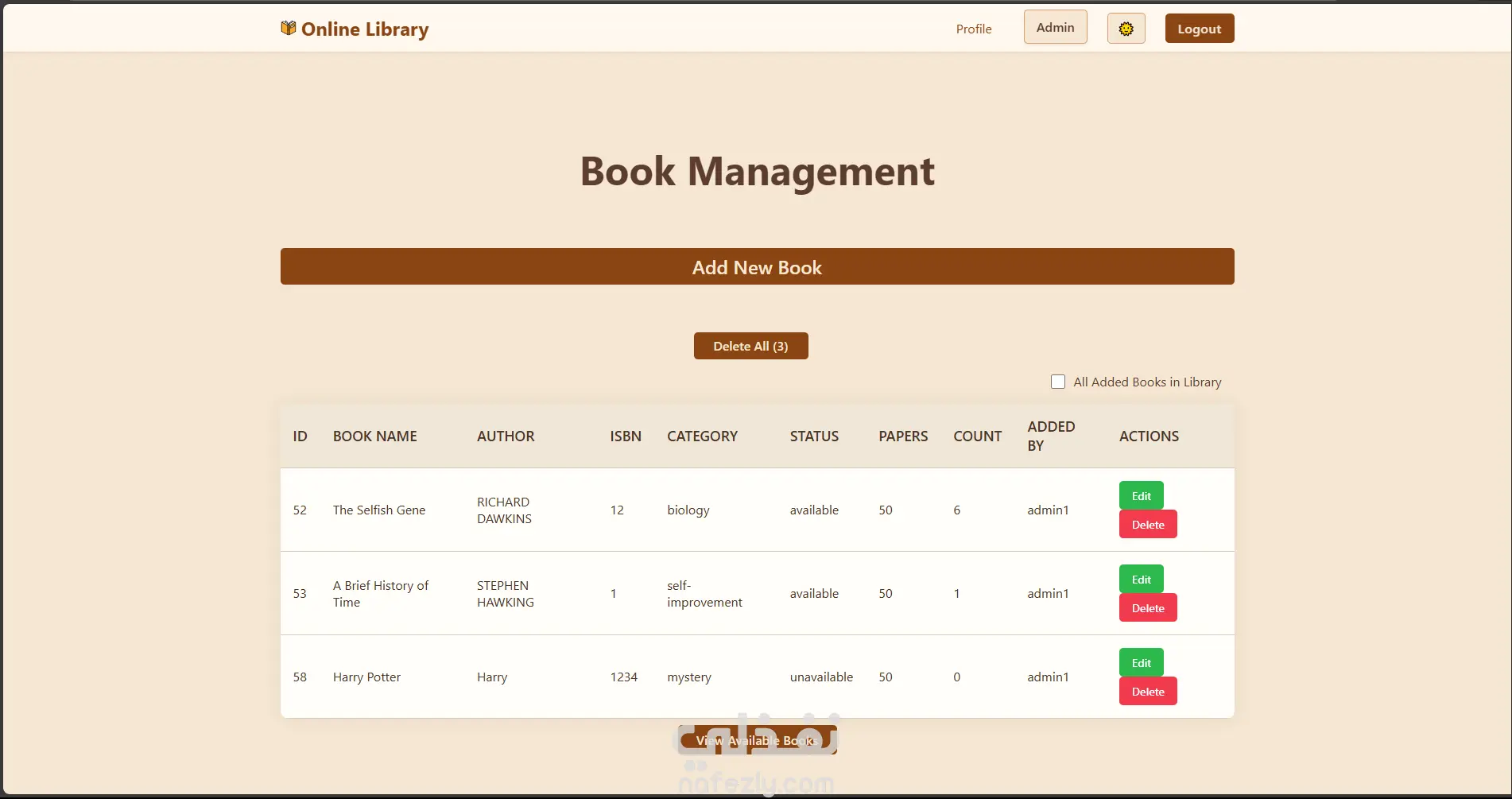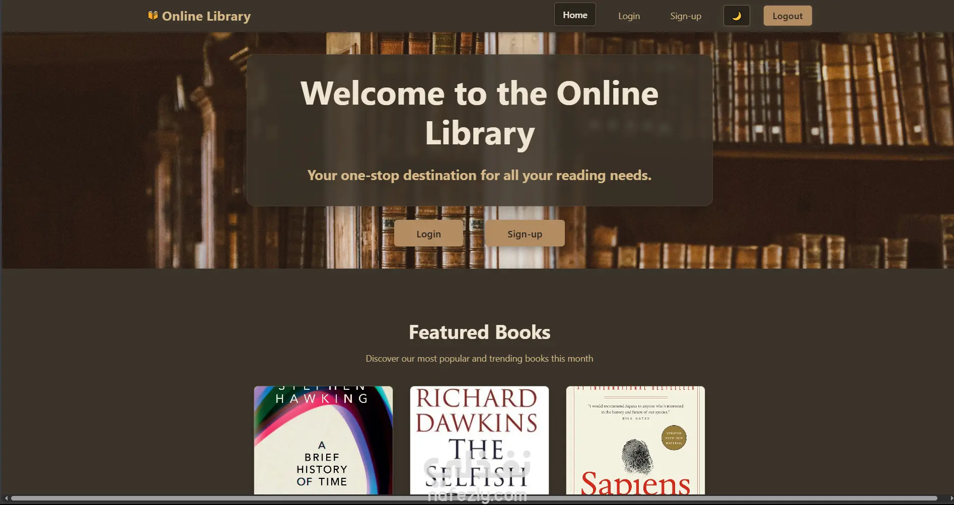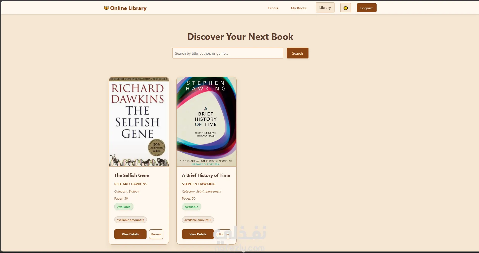 تطبيق ويب يتيح للمستخدمين استعراض الكتب واستعارتها عبر الإنترنت، مع لوحتين مخصصتين للمشرف والمستخدم. تم تطوير المشروع باستخدام Django مع واجهة أمامية مبنية بـ HTML, CSS, JavaScript. دوري في المشروع: بناء نظام تسجيل الدخول والصلاحيات باستخدام Django Auth System. تطوير لوحة تحكم المشرف لإدارة الكتب والمستخدمين. إنشاء واجهة المستخدم لاستعراض الكتب وتنفيذ عمليات الاستعارة.