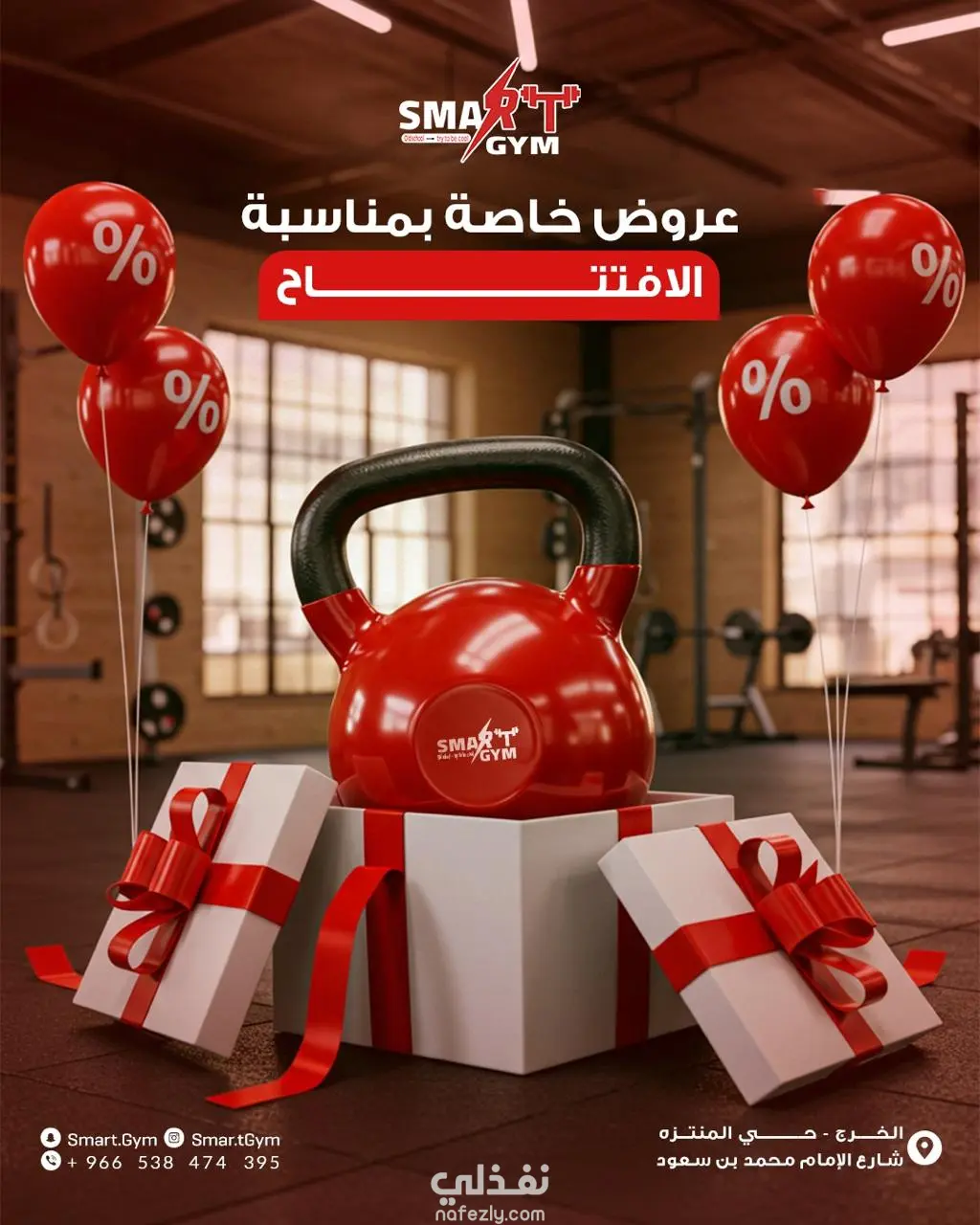 تصميم حملة متكاملة من بوستات السوشيال ميديا لصالة الألعاب الرياضية Smart Gym بمناسبة الافتتاح.