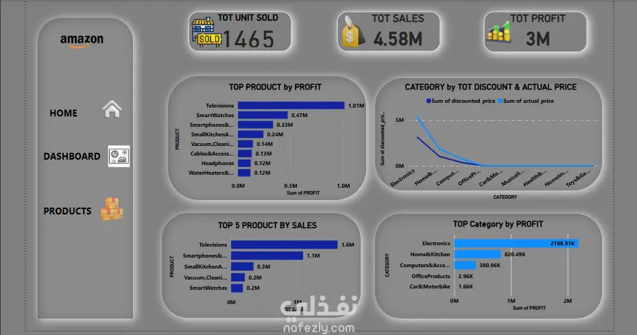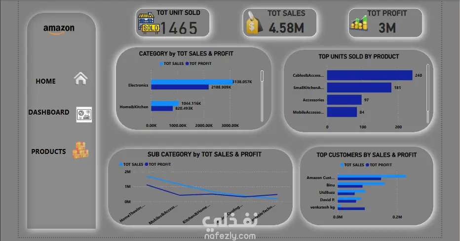This project is an Amazon Sales Dashboard built using Power BI for data visualization. The data was cleaned and preprocessed using Excel Power Query, and the final dashboard provides insights into sales, profit, and customer trends.