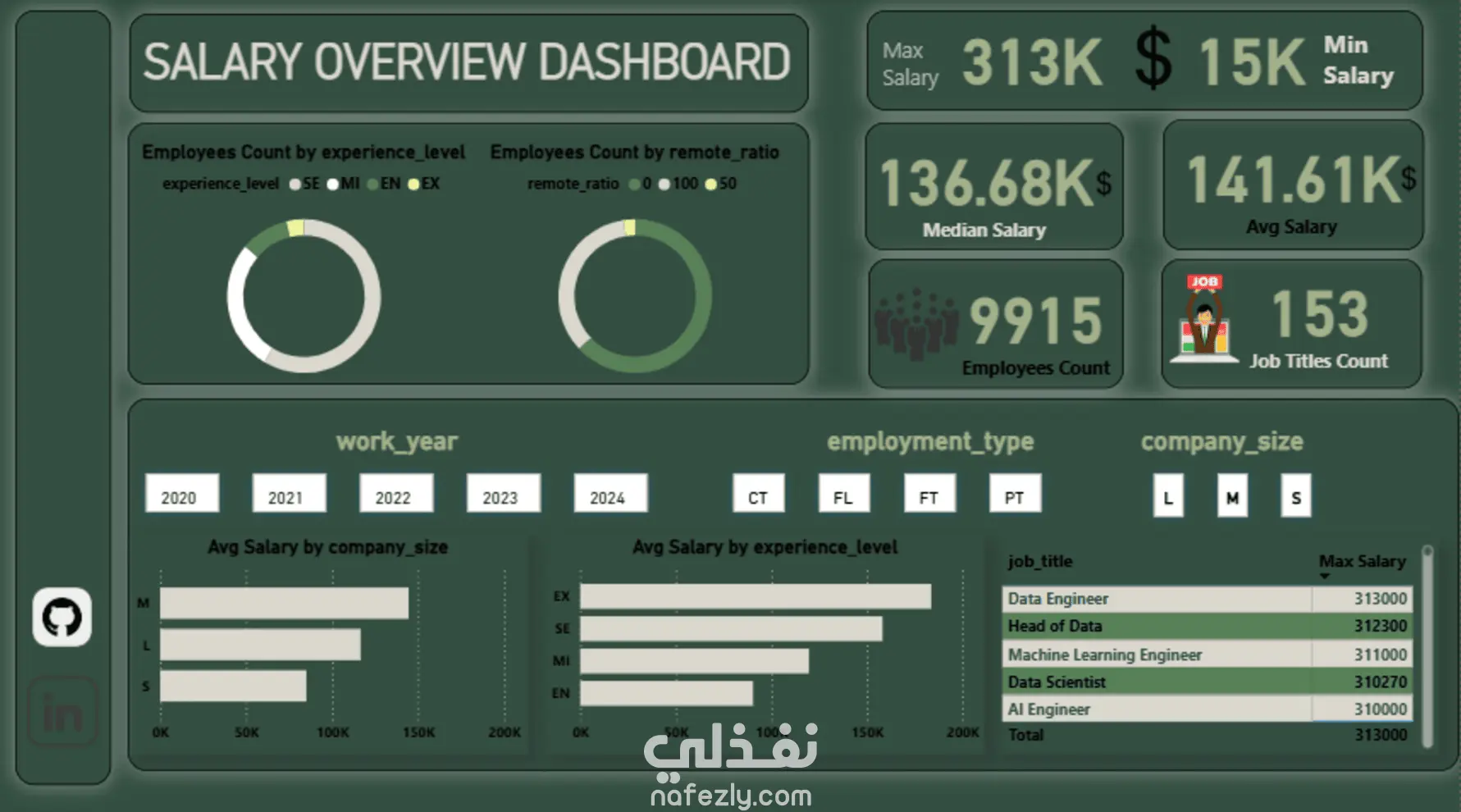 تنفيذ مشروع تحليل بيانات رواتب العاملين في مجال التقنية باستخدام Power BI. الهدف كان بناء لوحة تعرض صورة واضحة عن الرواتب حسب عدة عوامل مؤثرة.