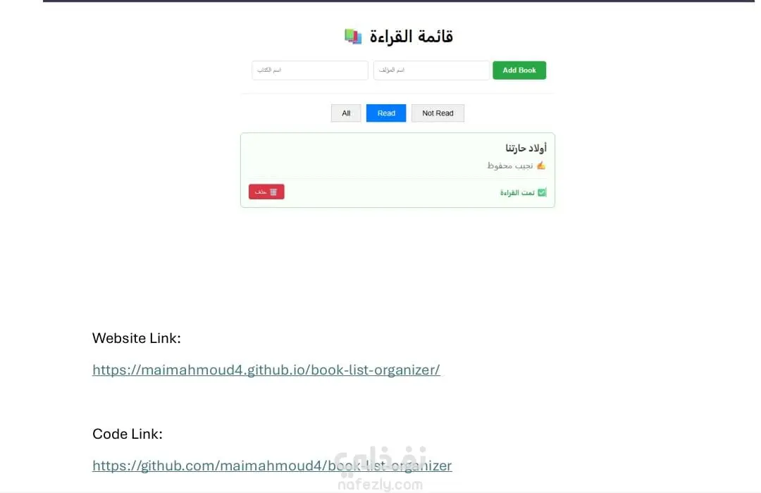 مشروع لاضافه كتاب لقائمه قراءه