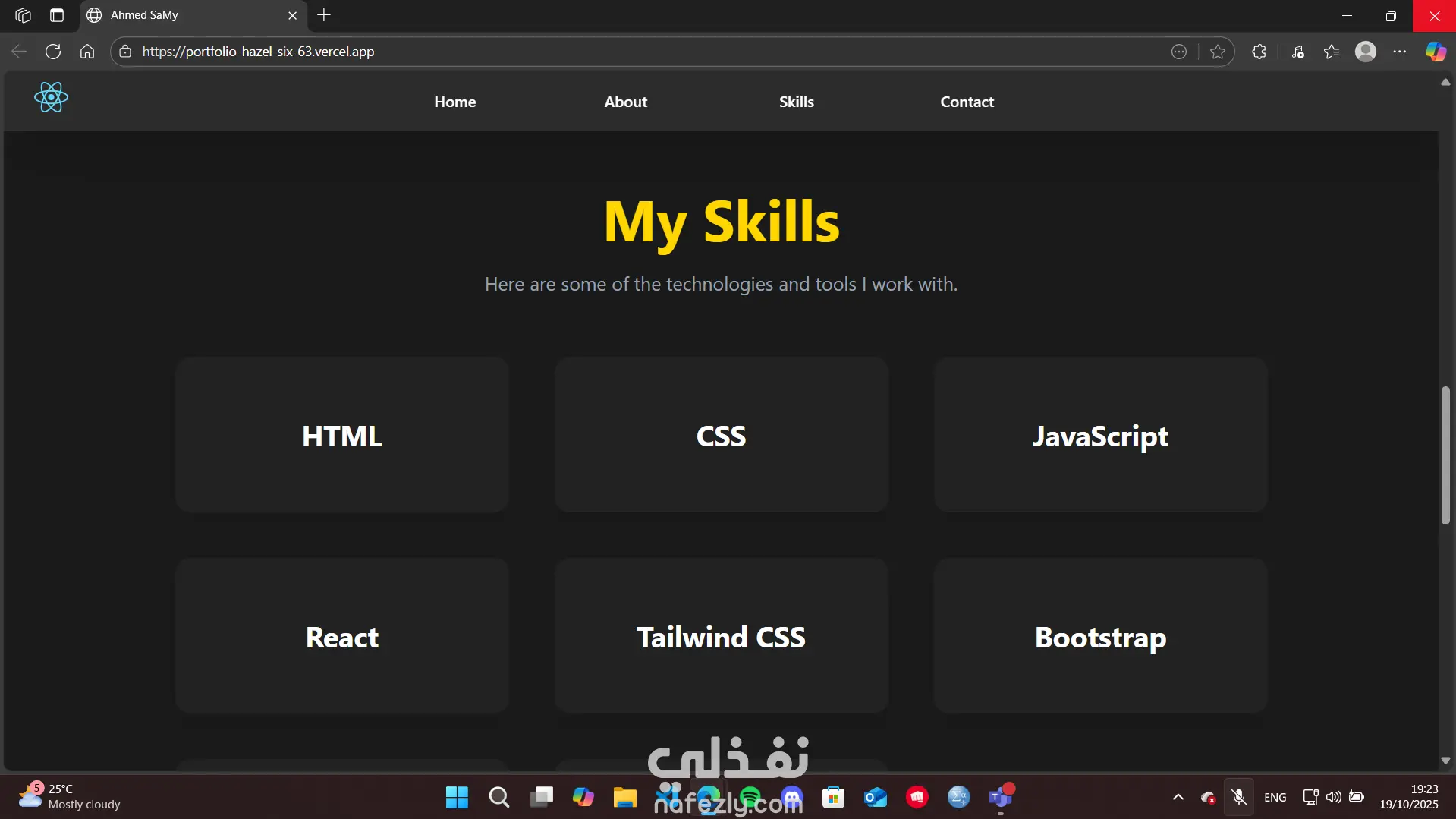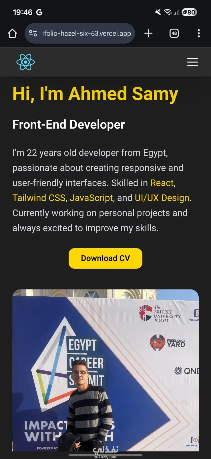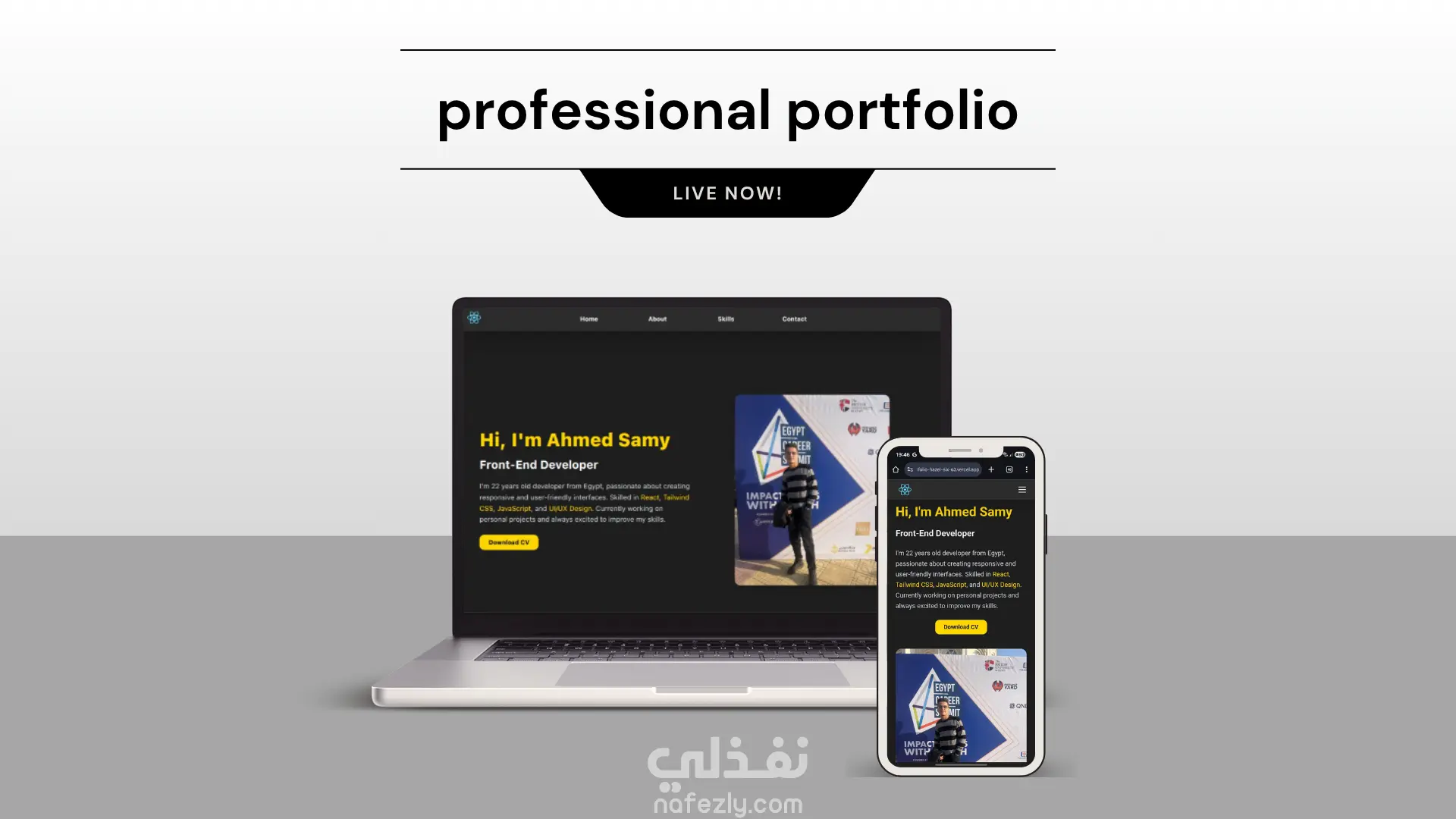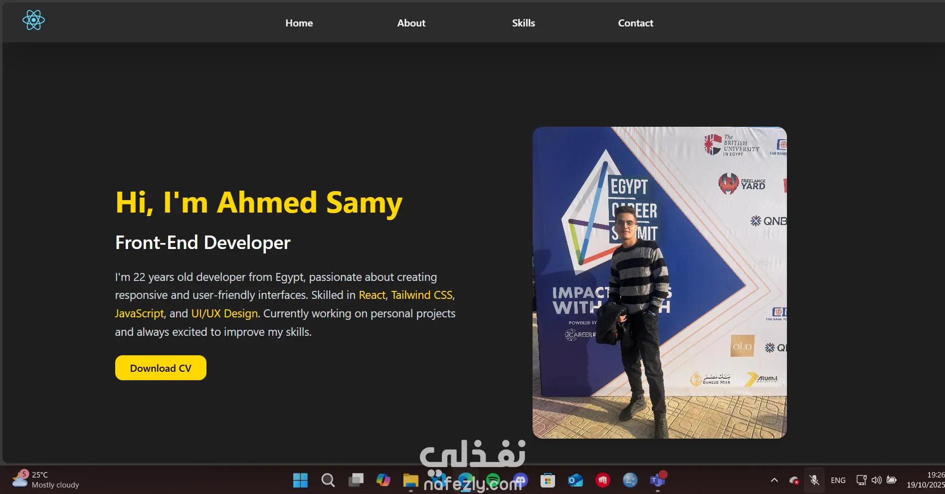 تصميم وتطوير Portfolio احترافي باستخدام React + Tailwind CSS