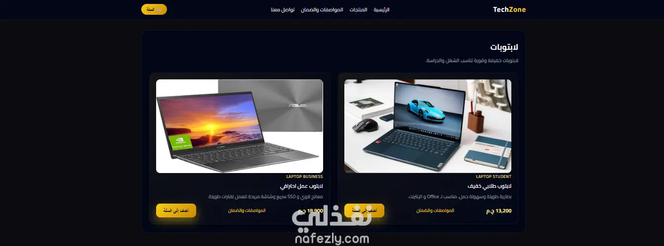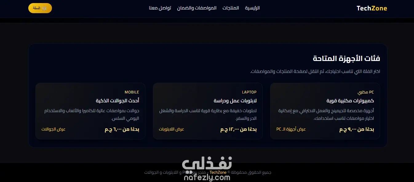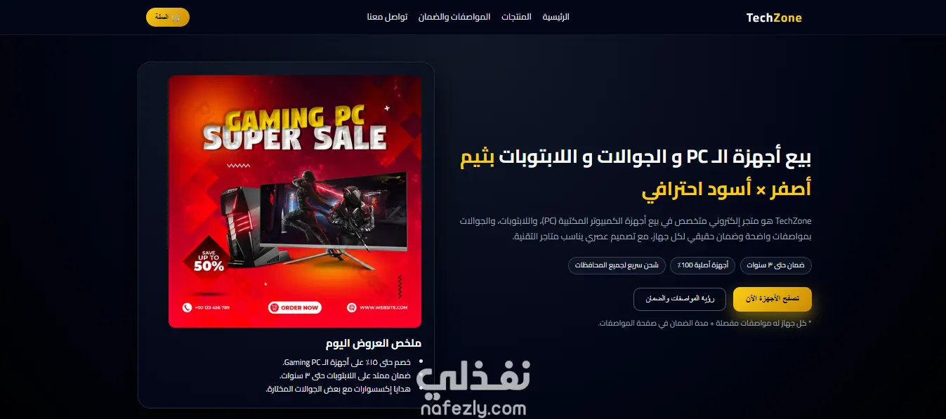 تصميم متجر TechZone احترافي لبيع أجهزة الـ PC واللابتوبات والجوالات | نسخة كاملة + ملفات جاهزة