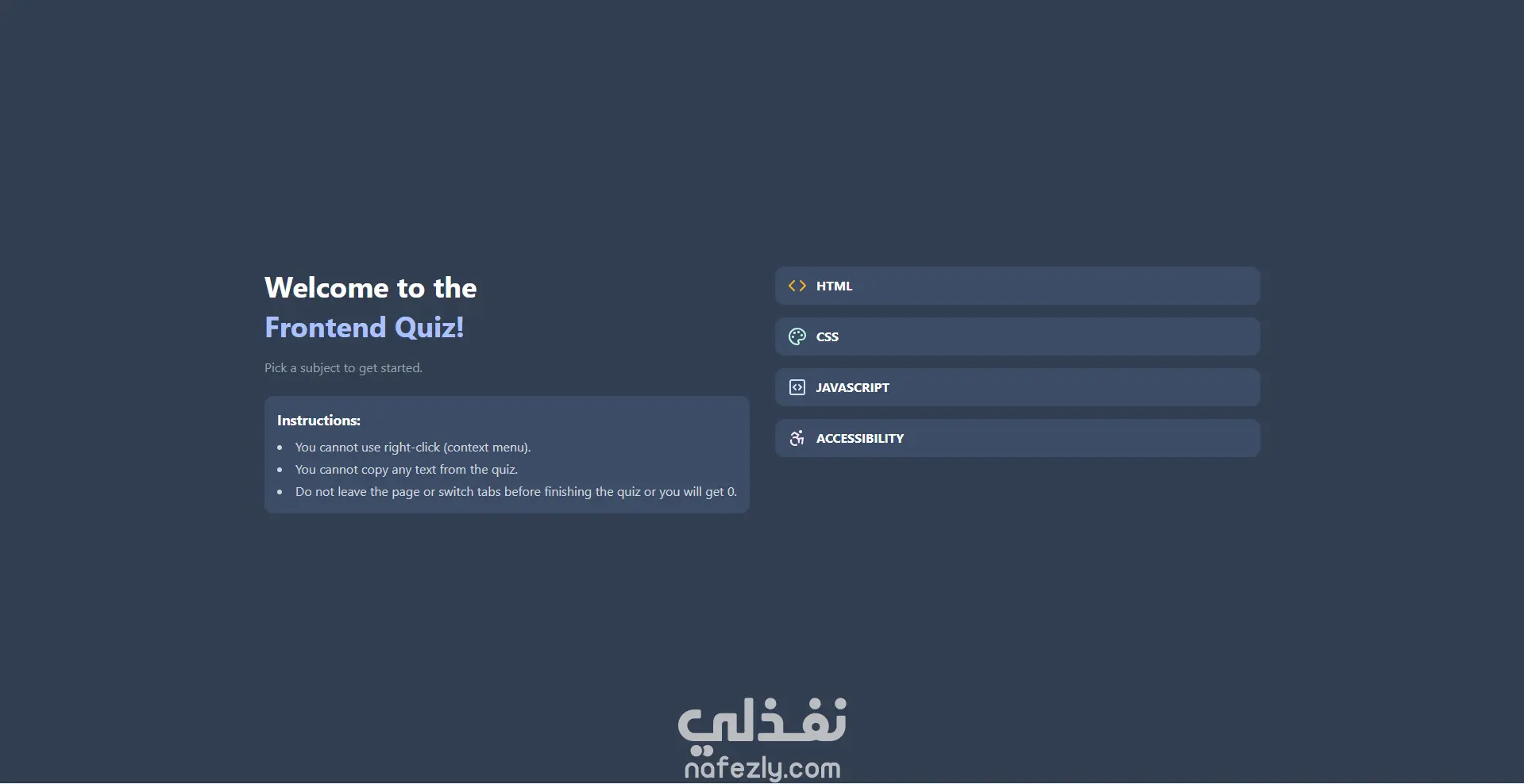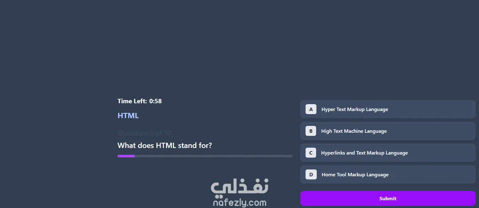 This website is a Quiz Frontend Application built using React and Tailwind CSS. It provides a clean, fast, and responsive interface where users can take multiple-choice quizzes in an interactive way. The app uses React’s component-based architecture to manage questions, answers, score calculation, and state transitions smoothly. Tailwind CSS is used to style the UI with modern, minimal, and fully responsive layouts. The quiz interface includes features such as: • Displaying questions and multiple-choice answers • Tracking user selections • Showing the final score • Smooth transitions and clean UI design Overall, the application delivers a simple yet engaging user experience, demonstrating frontend skills using modern technologies.