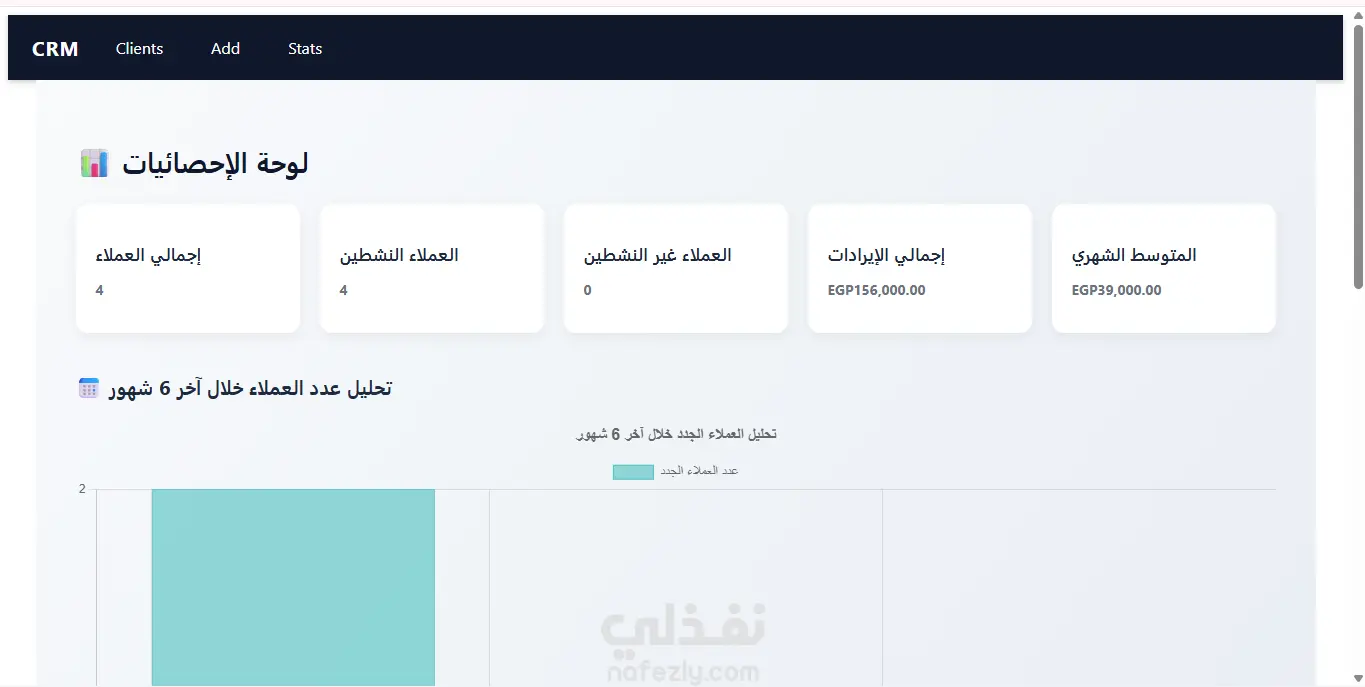 نظام CRM كامل لإدارة العملاء وتحليل البيانات شهرياFull Stack