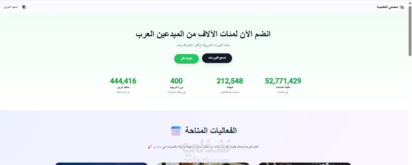 تصميم بسيط واحترافي يناسب النسخة المبدئية من المنصة التعليمية.