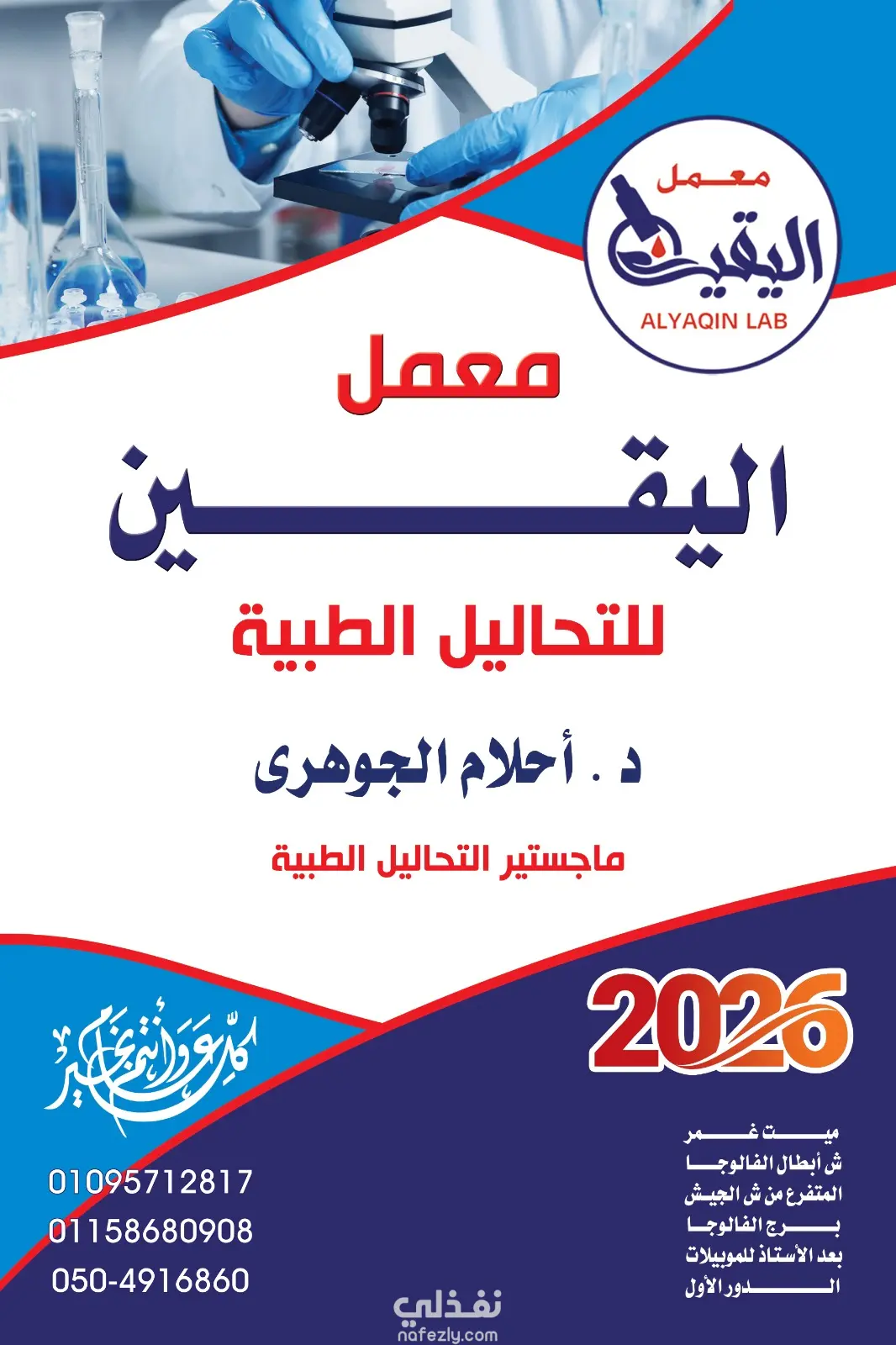 تصميم نتيجة لعام 2026 مقاس 48*32 سم لأحد معامل التحاليل