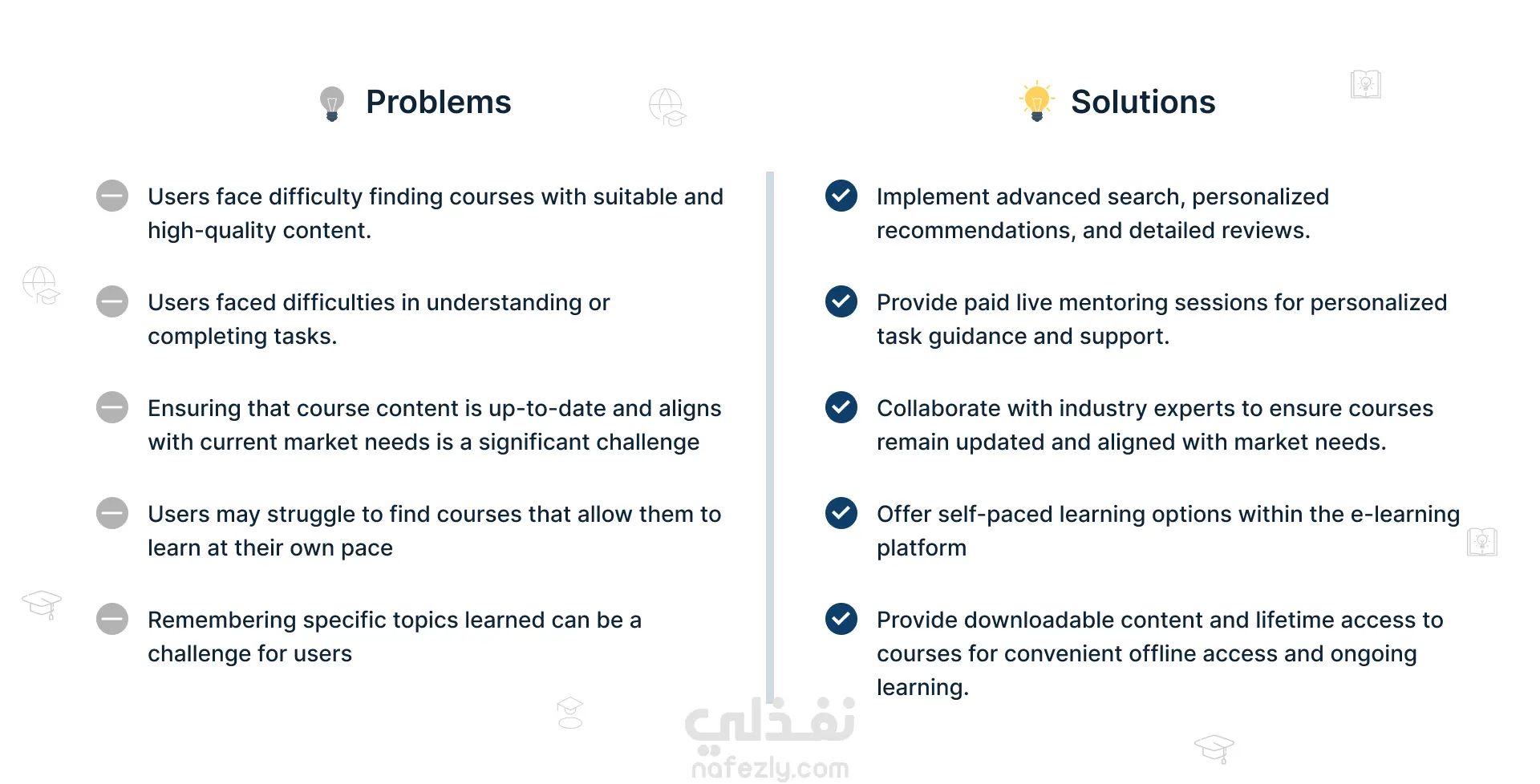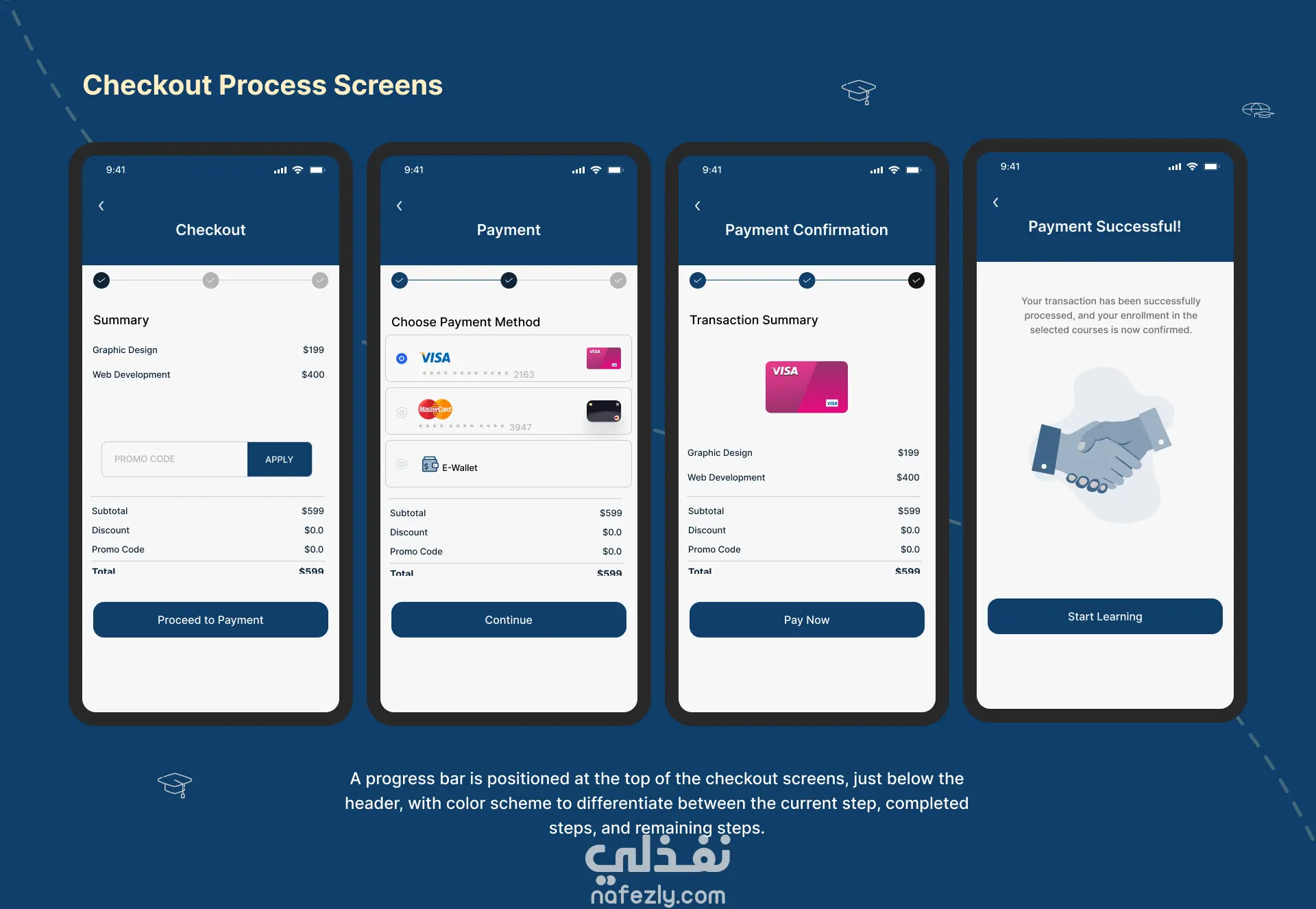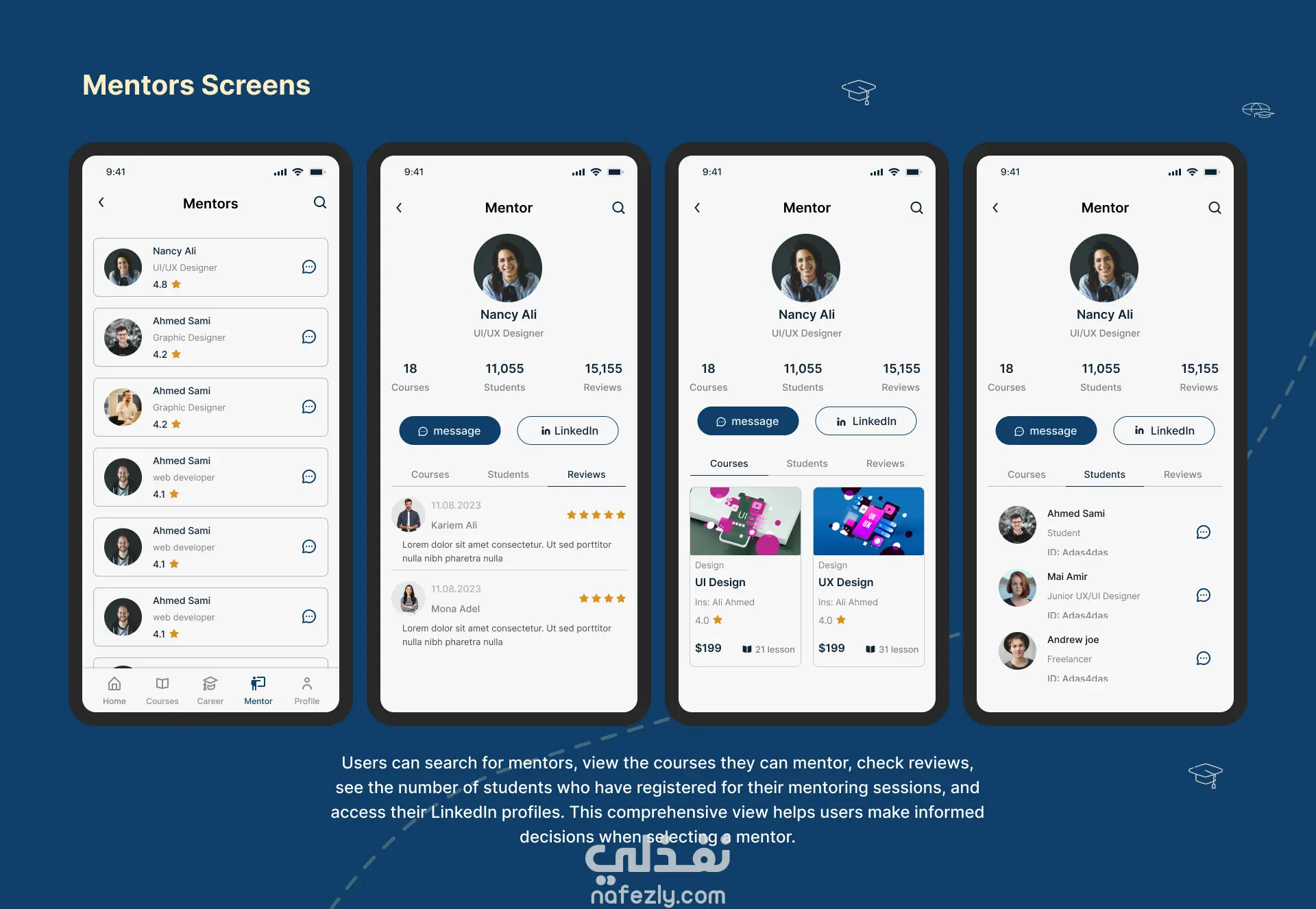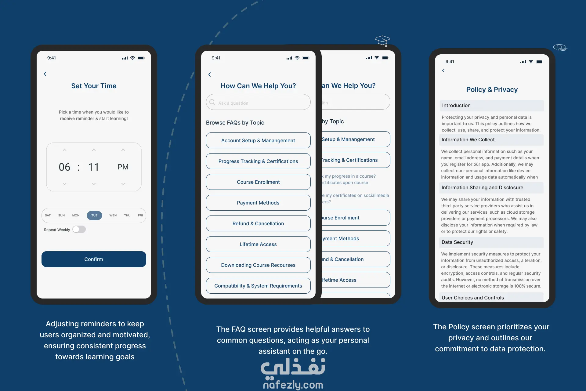 يهدف المشروع إلى تطوير تطبيق للتعليم الإلكتروني يقدّم منصة تعليمية شاملة تلبي الاحتياجات التعليمية المتنوعة للمستخدمين. من خلال توفير مجموعة واسعة من الدورات التدريبية، وخيارات مسارات مهنية، وجلسات إرشاد مدفوعة، وأداة لإنشاء السيرة الذاتية، يمكّن التطبيق المستخدمين من اكتساب مهارات جديدة، وتطوير مساراتهم المهنية، وعرض إنجازاتهم.