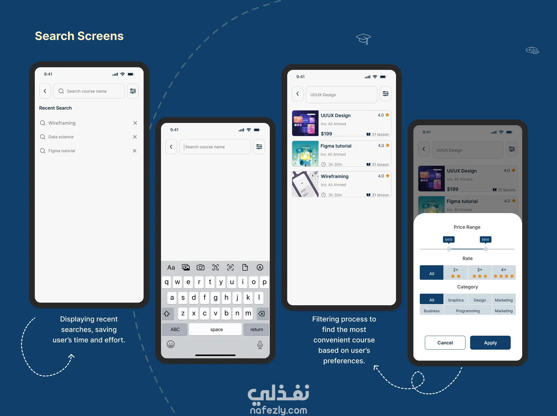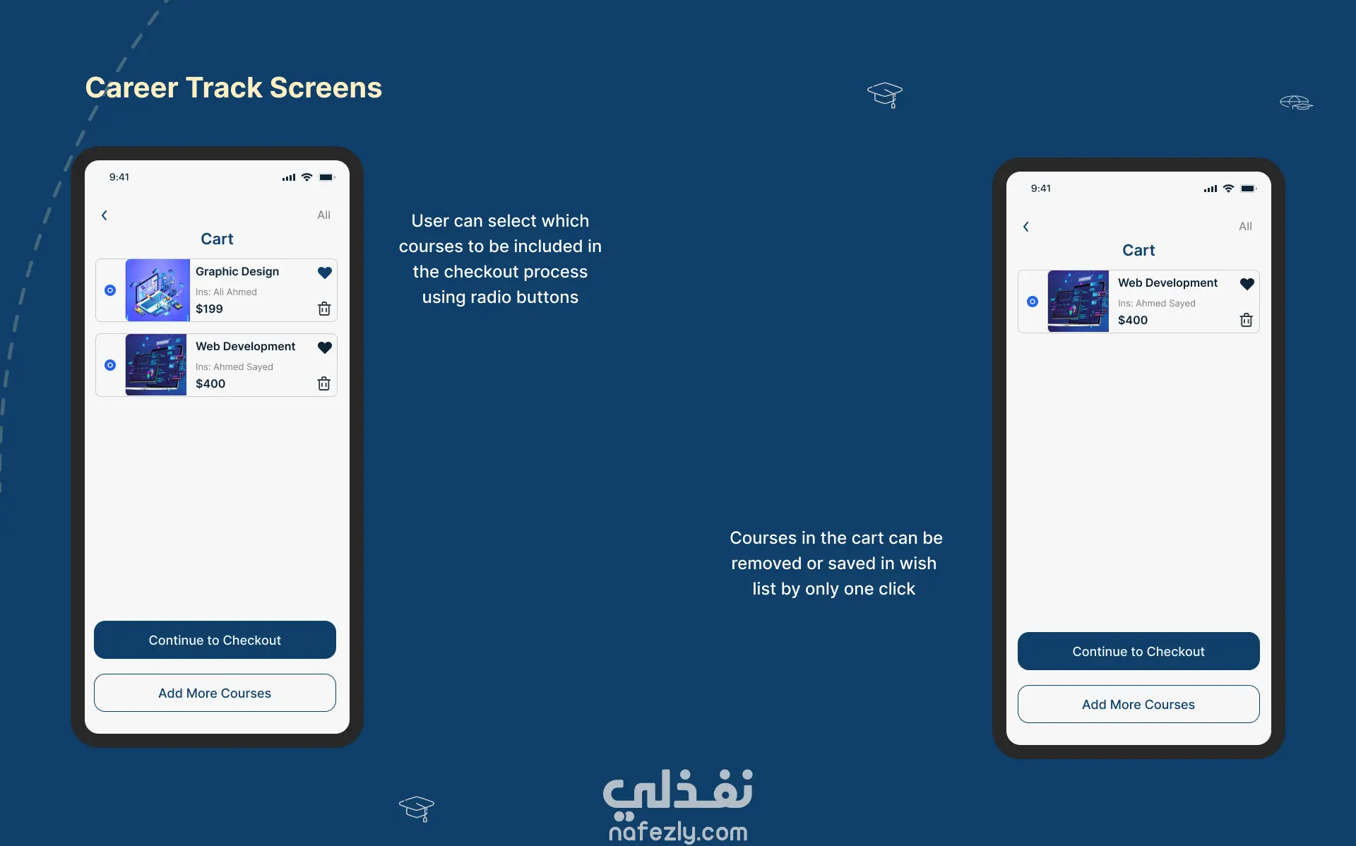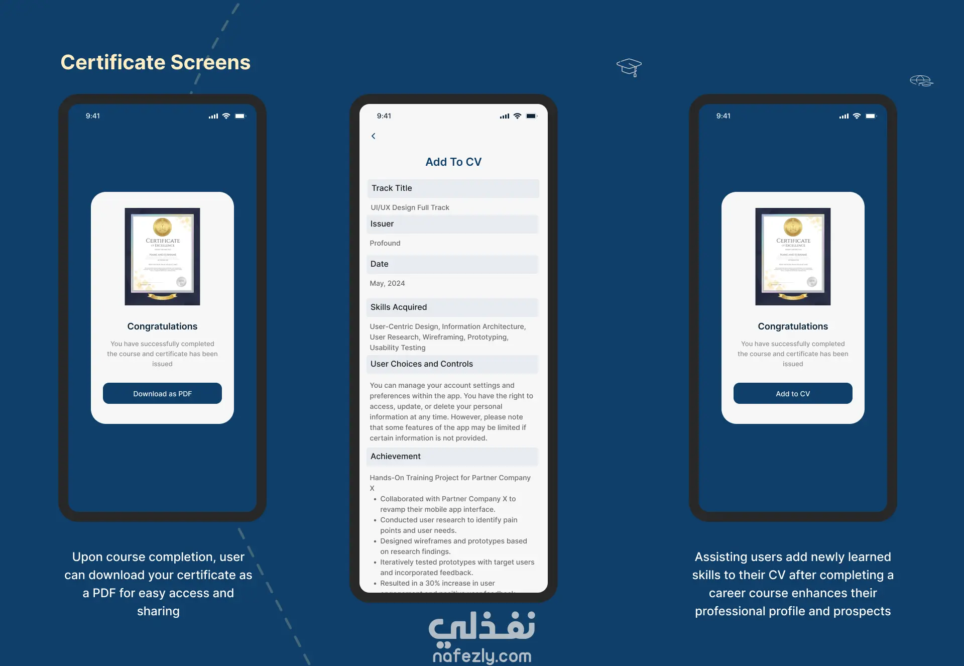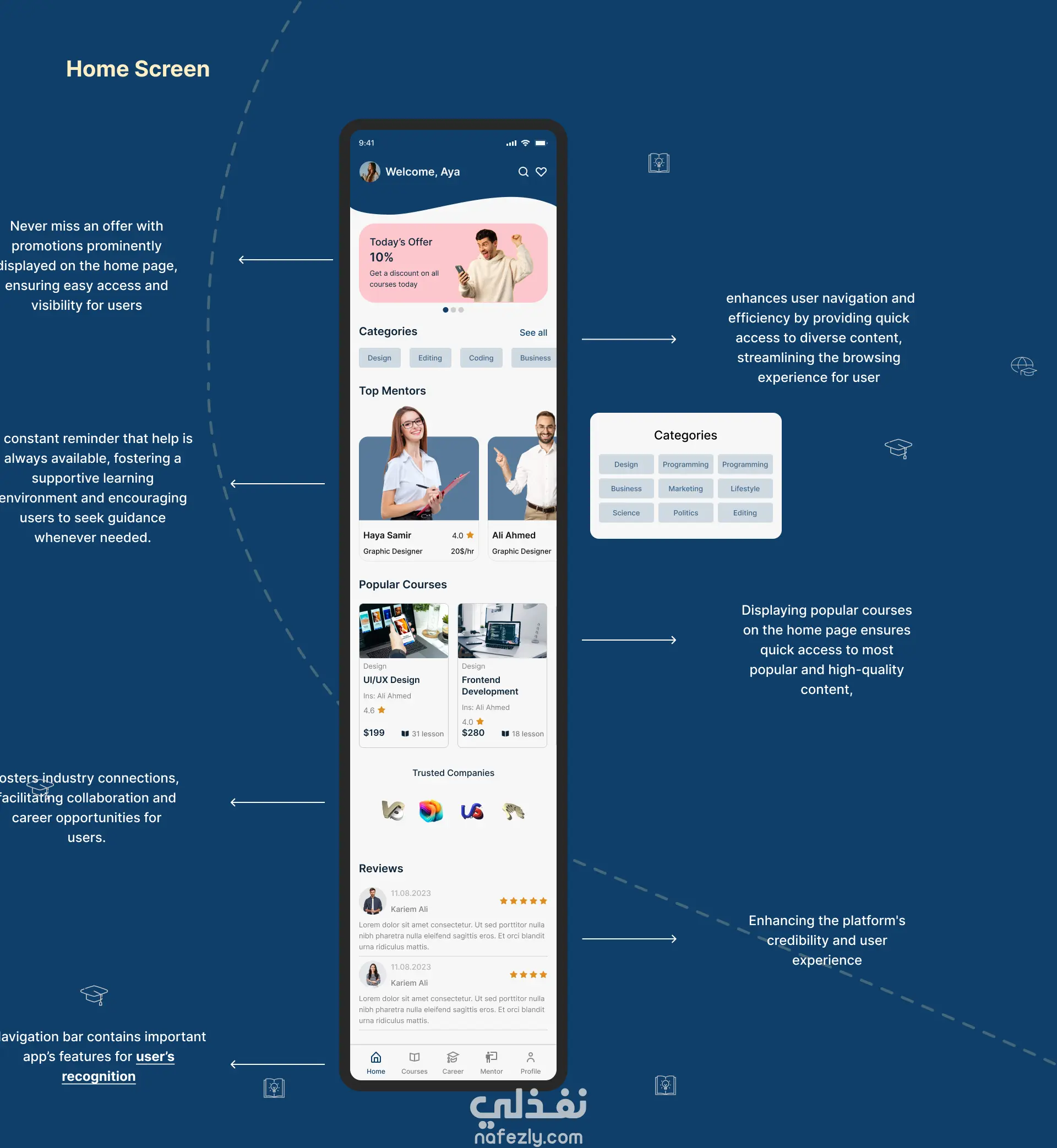 يهدف المشروع إلى تطوير تطبيق للتعليم الإلكتروني يقدّم منصة تعليمية شاملة تلبي الاحتياجات التعليمية المتنوعة للمستخدمين. من خلال توفير مجموعة واسعة من الدورات التدريبية، وخيارات مسارات مهنية، وجلسات إرشاد مدفوعة، وأداة لإنشاء السيرة الذاتية، يمكّن التطبيق المستخدمين من اكتساب مهارات جديدة، وتطوير مساراتهم المهنية، وعرض إنجازاتهم.