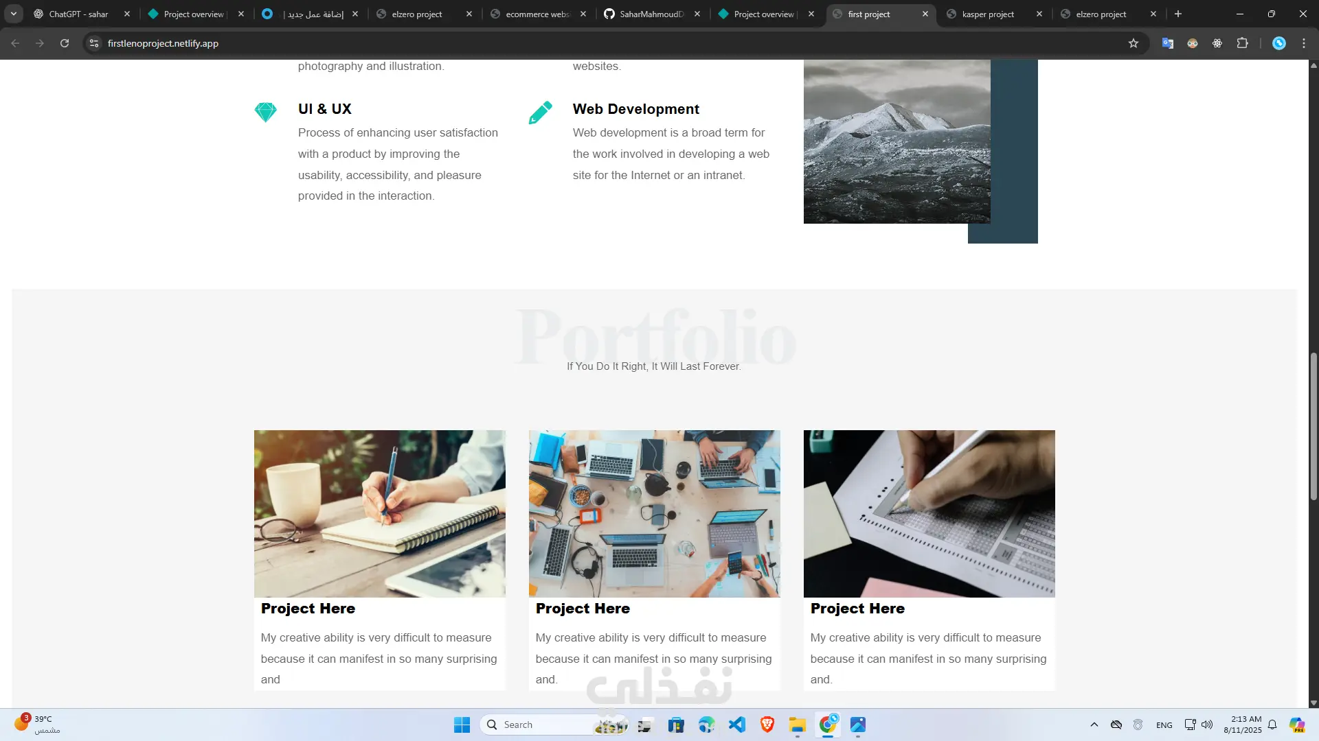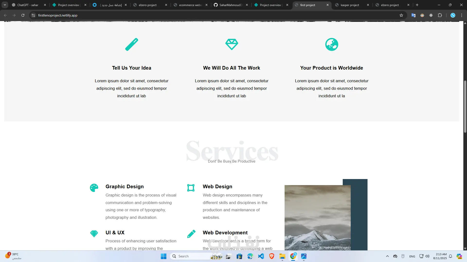 This was the first project I ever built. Even though it was very simple, I was really proud of it because it was my first hands-on experience. I originally created it on my phone using CodePen, and surprisingly, it turned out fully responsive. It’s a clean and responsive landing-page template built with pure HTML and CSS — no frameworks used. After buying my computer, I moved the project to Visual Studio Code and only needed to make a few minor adjustments. I honestly didn’t expect it to look that good or be that responsive from the very beginning. -Perfect for simple product or service showcases. -Responsive design for all screen sizes -Simple layout with clear sections -Custom navigation bar -Clean and organized code
