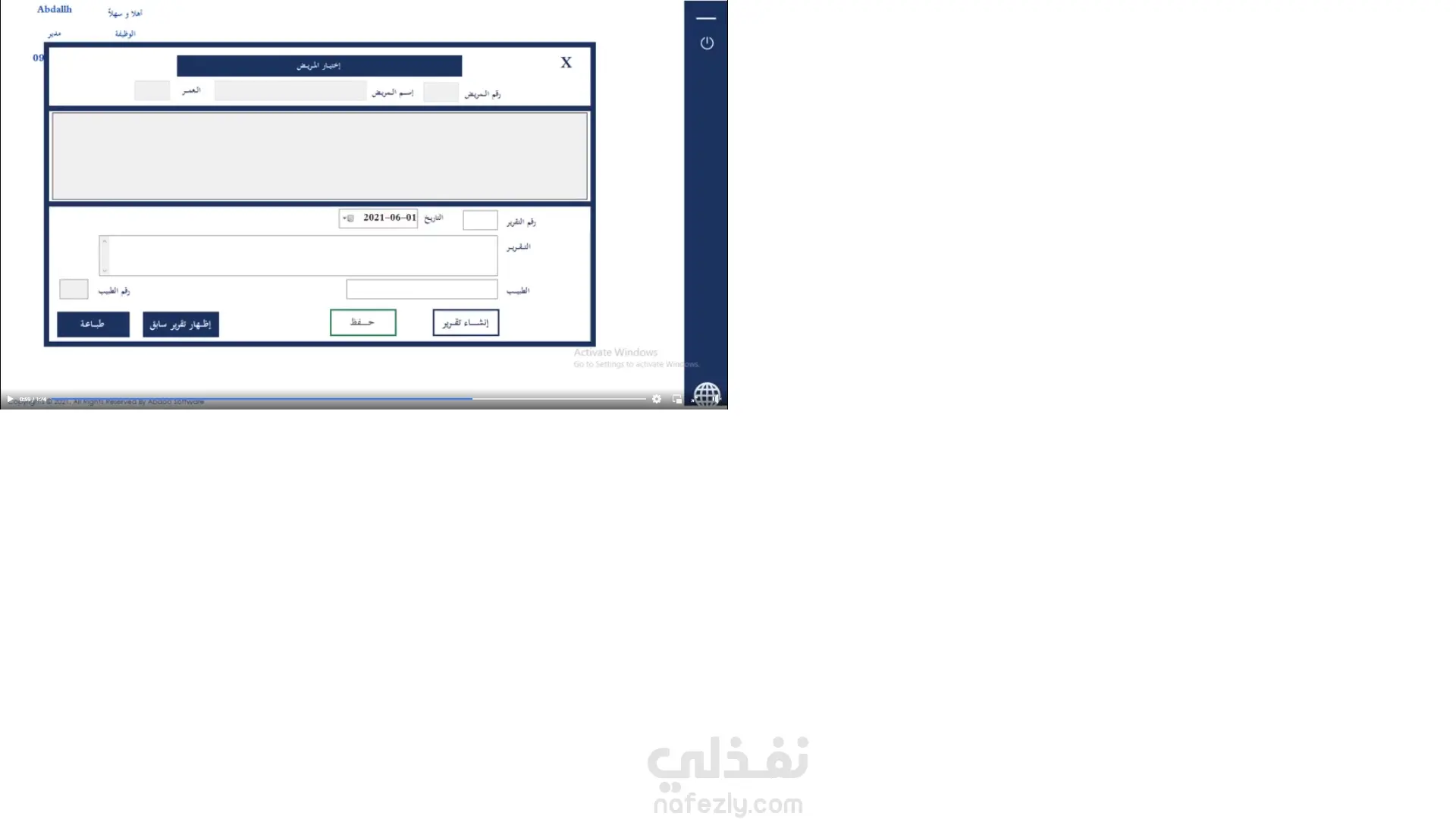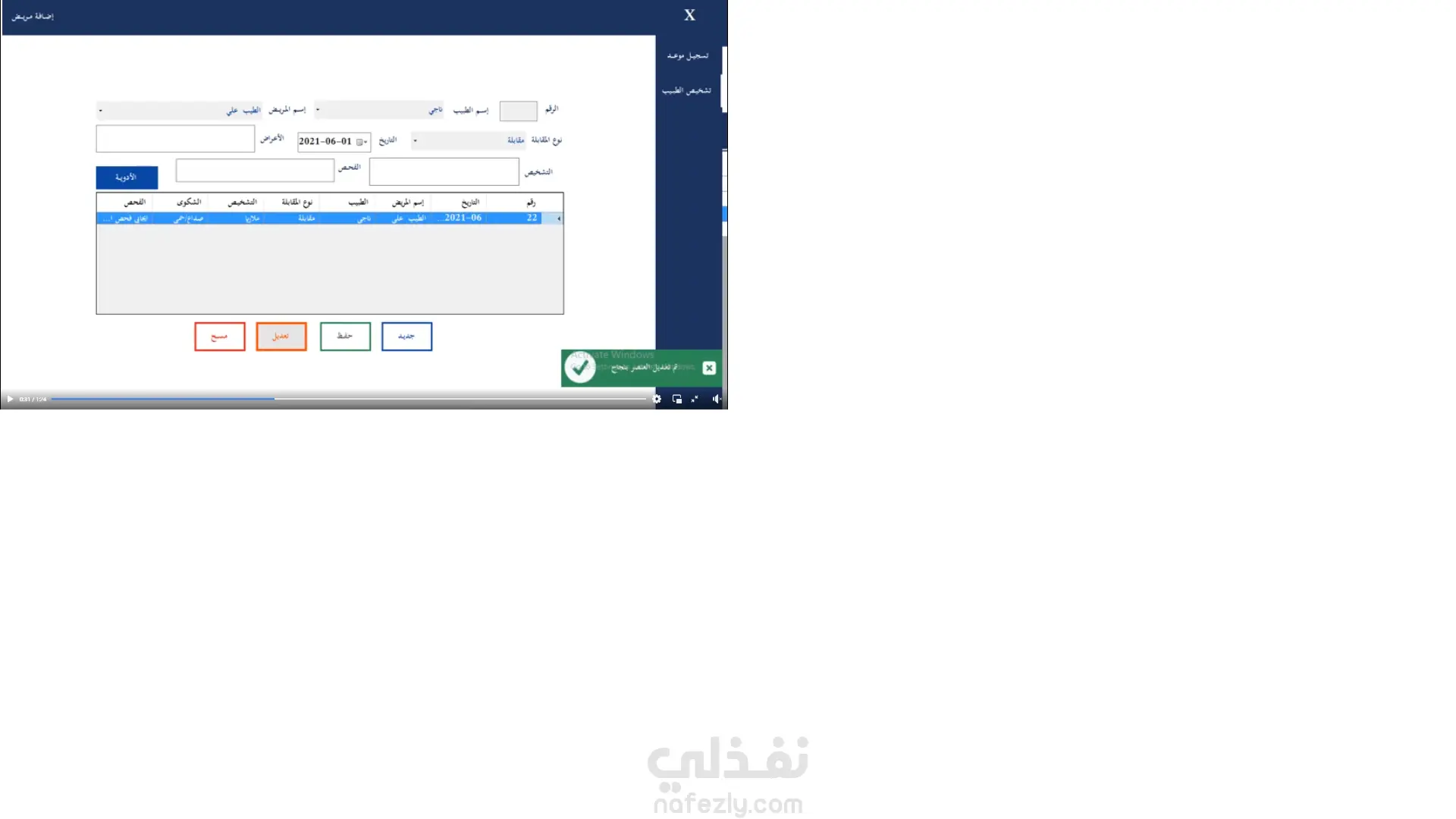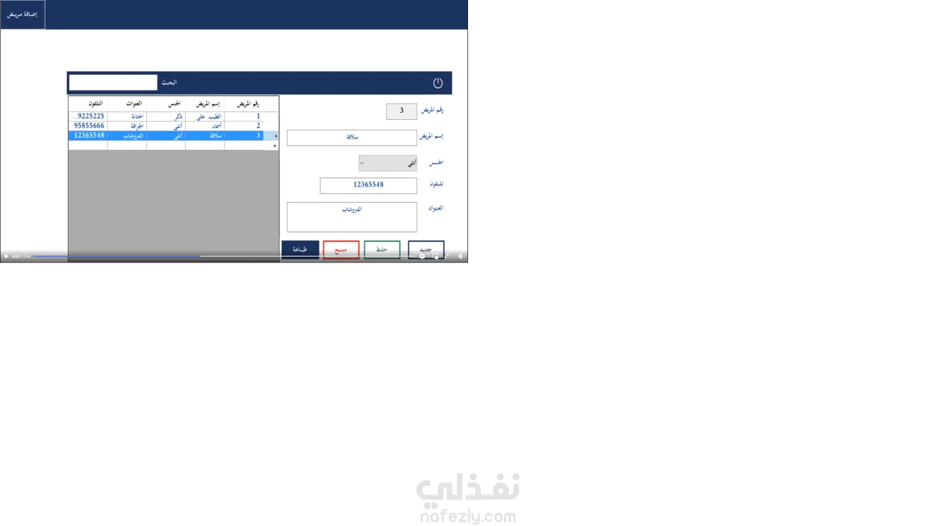 ارشفة سجلات المرضى و اصدار تقرير عن حالة المريض تم استخدام قاعدة بيانات SQLite