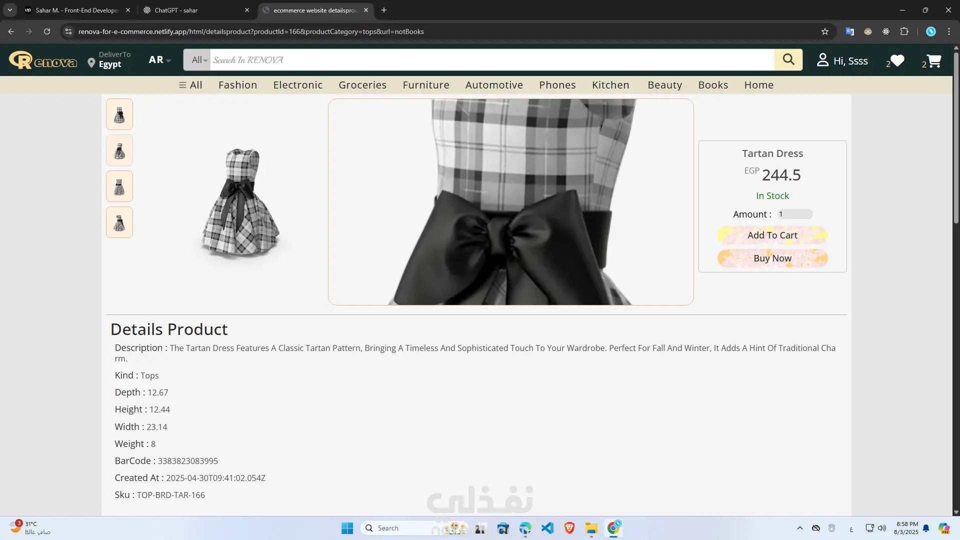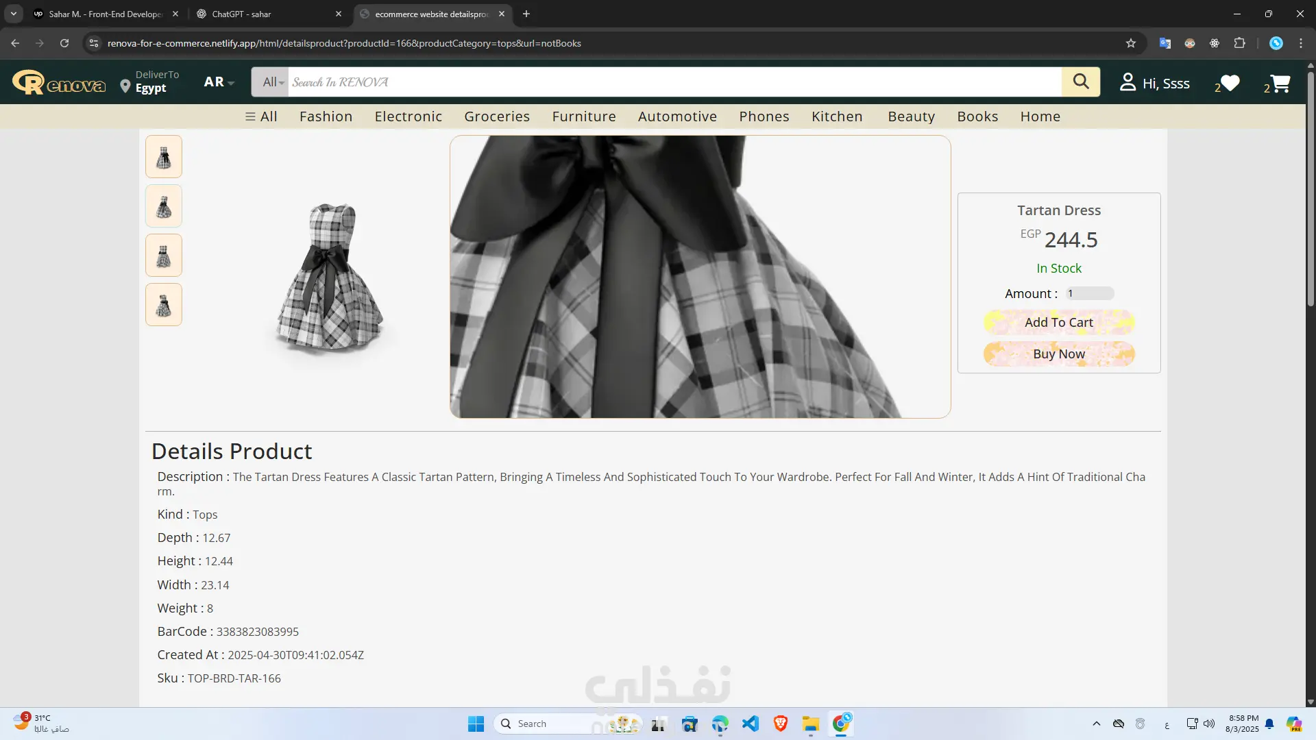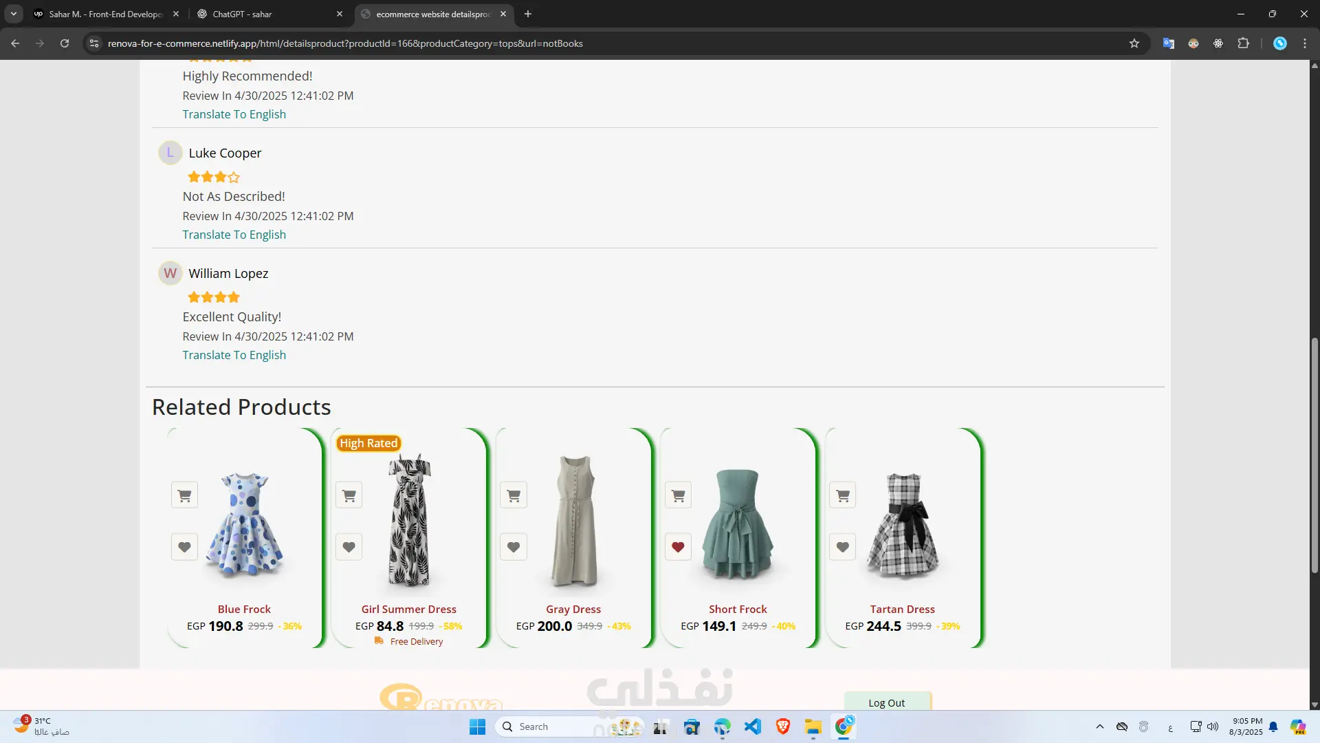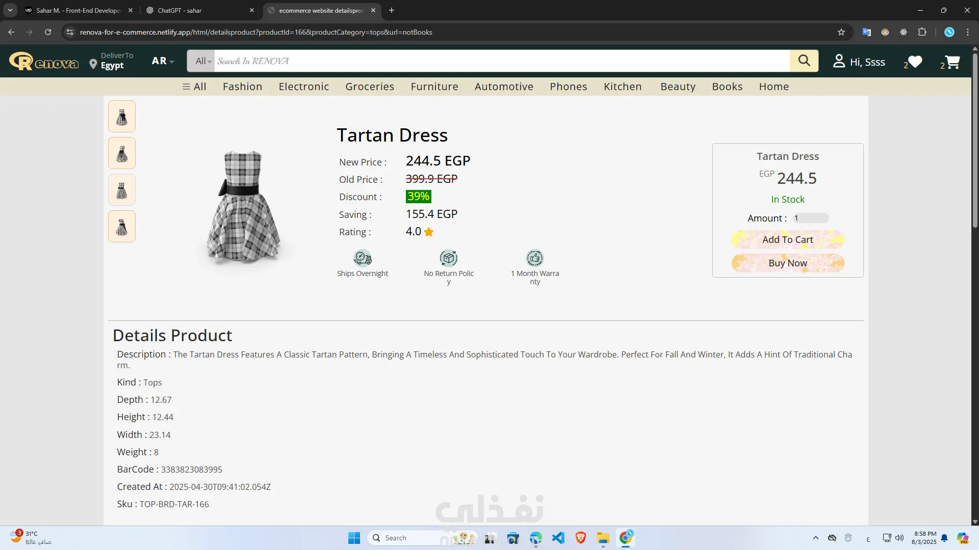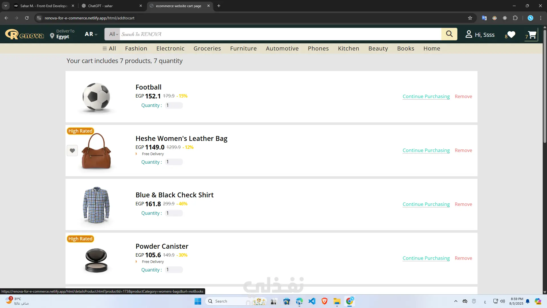 Developed my fifth project, Renova, a modern and fully responsive e-commerce website built entirely using HTML, CSS, and vanilla JavaScript without any frameworks or external libraries. -Designed the complete UI/UX, including navigation, product pages, product details, cart, and checkout flow. -Integrated a fake API to fetch and display products dynamically, simulating real e-commerce data. -Implemented advanced JavaScript features such as product filtering, search functionality, and interactive cart management. -Built a full authentication system, including account registration and user login using JavaScript and browser-based data handling. -Added bilingual support (English & Arabic) and used Google tools to assist in translating the website content from English to Arabic and vice versa. -Ensured full responsiveness, smooth interactions, and a consistent experience across different devices. -Optimized performance, accessibility, and loading speed. This project was a major milestone in my journey, allowing me to build a nearly complete e-commerce platform and apply a wide range of JavaScript techniques, which boosted my confidence significantly compared to previous projects.