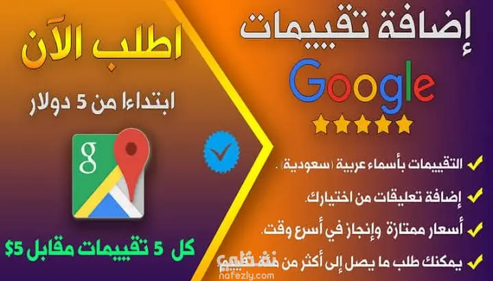أقدّم لك خدمة إضافة تقييمات Google احترافية بأسماء عربية حقيقيه وتعليقات مخصصة حسب رغبتك.