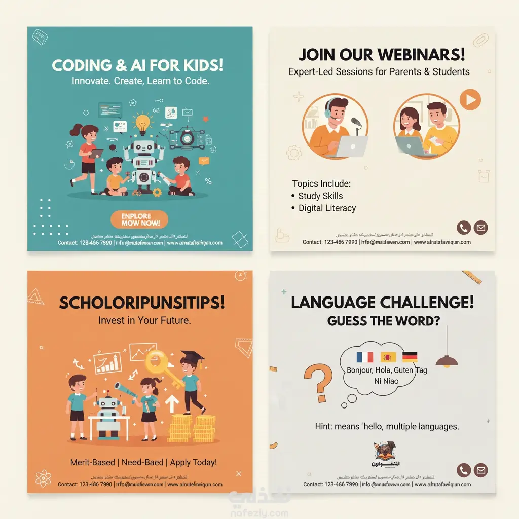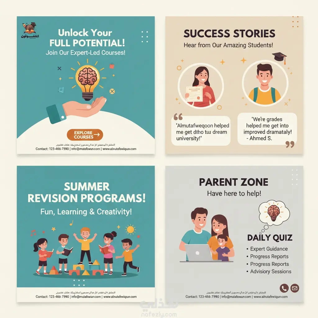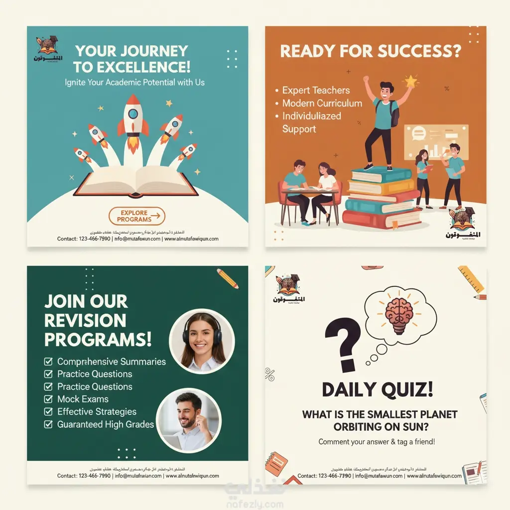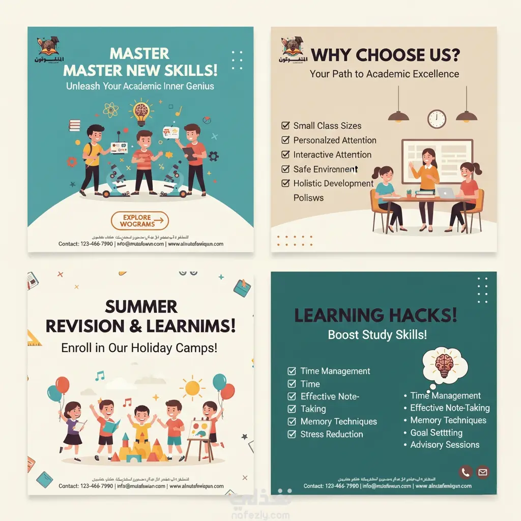 تصميم جرافيك لمؤسسة تعليمية فيها العديد من التصاميم المختلفة
