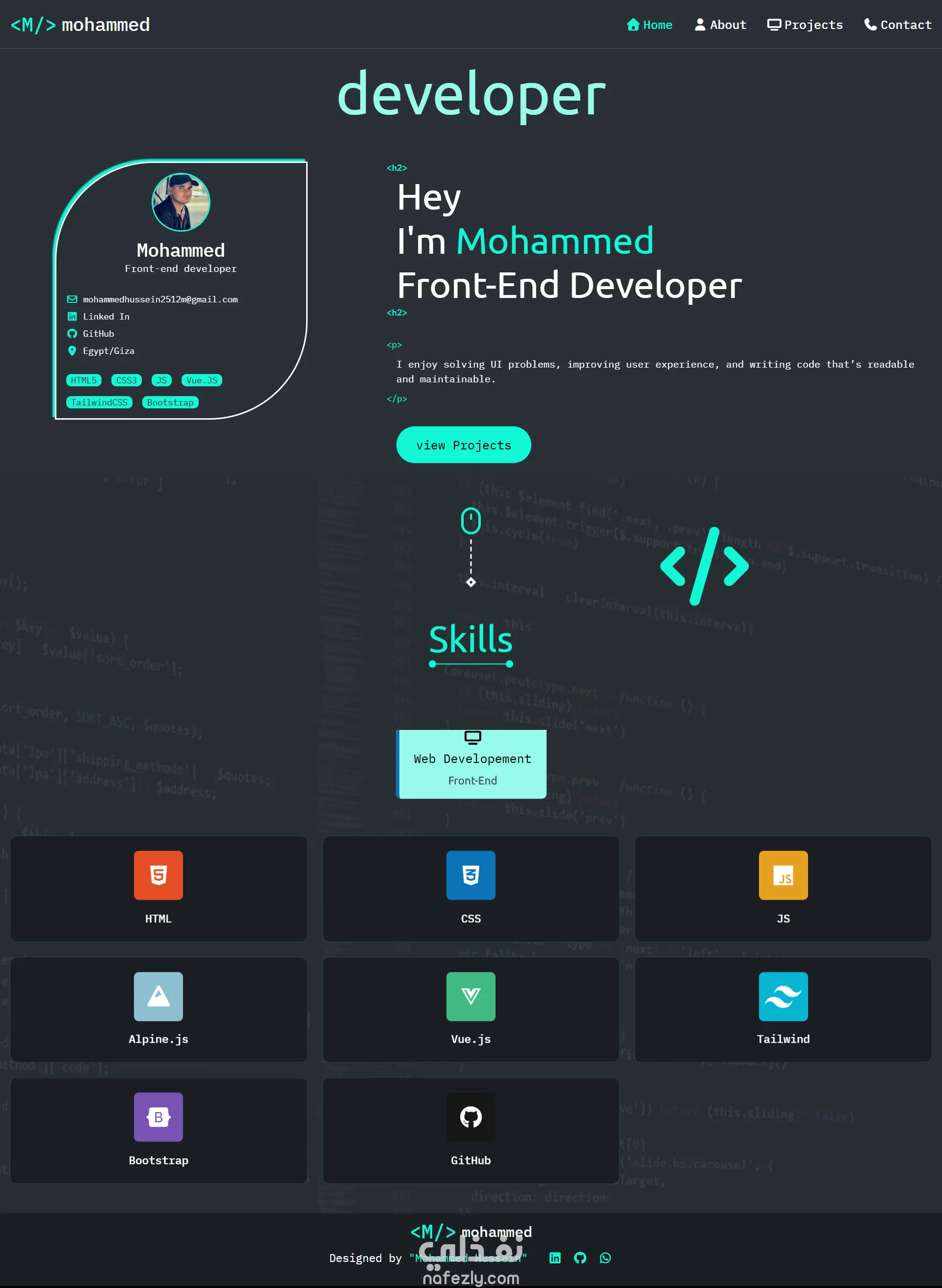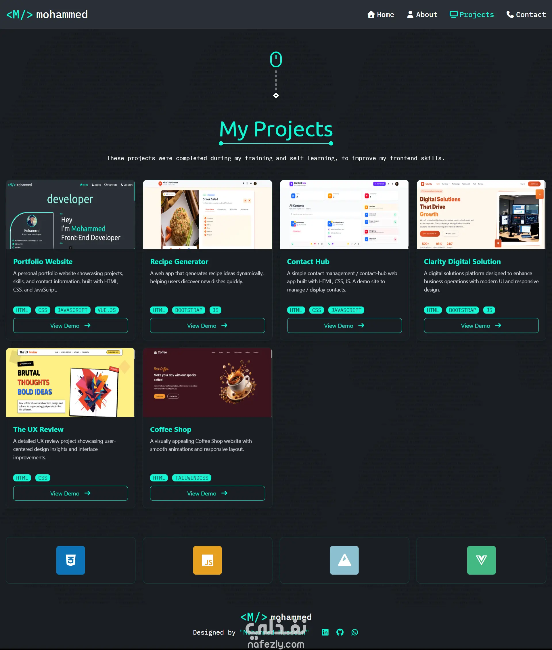 في هذا المعرض تجد مجموعة مختارة من مشاريعي التي تُظهر مهاراتي في البرمجة، التصميم، وتنفيذ أفكار كل مشروع يعكس اهتمامي بالتفاصيل، التصميم المتجاوب، وتجربة المستخدم السلسة. أسعى دائمًا للإبداع والتميّز، وأؤمن أن كل مشروع هو فرصة لتقديم قيمة حقيقية. إذا أعجبك ما تراه، يسعدني تواصلك لنتعاون معًا ونحوّل فكرتك إلى واقع رقمي.