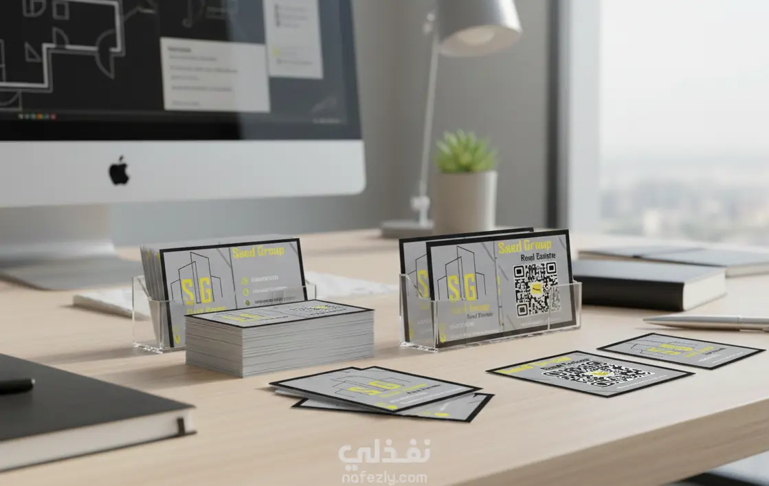 تصميم بزنس كارد احترافي مميز للشركات والمكاتب بالوان وتصاميم مناسبه وملائمه للشعار وبسيط وجذاب للعملاء وجاهز للطباعه مع مراعه مساحه الامان التي يجب أن تتركها للتصميم حول الحواف لضمان عدم اقتصاص العناصر المهمة أو ظهور حواف بيضاء غير مرغوب
