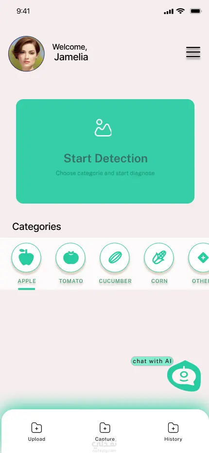 هذا المشروع عبارة عن تطبيق موبايل تم تطويره باستخدام Flutter يهدف إلى تحليل صور النباتات وتشخيص حالتها الصحية باستخدام تقنيات الذكاء الاصطناعي. يقوم المستخدم بالتقاط صورة للنبتة أو رفعها من المعرض، ثم يقوم التطبيق بإرسال الصورة إلى نموذج Machine Learning يقوم بتحليلها لتحديد: هل الصورة تحتوي على نبات أم لا حالة النبات (سليم / مصاب) نوع النبات نوع المرض في حالة وجود إصابة مميزات التطبيق: واجهة بسيطة وسهلة الاستخدام (تصميم بـ Flutter UI). تكامل مع واجهة برمجية (Flask API) لمعالجة الصور. عرض النتائج بشكل واضح مع اقتراحات للعلاج. طريقة التنفيذ: الواجهة الأمامية (Frontend): Flutter. إدارة الحالة: Cubit. واجهة الخادم (Backend): Flask (Python). النماذج الذكية: TensorFlow / Scikit-Learn. قاعدة البيانات: Firebase Firestore (لحفظ السجلات). نتيجة العمل: تم بناء التطبيق وتجربته محليًا بنجاح، مع واجهة مستخدم كاملة ودمج أولي للنماذج.
