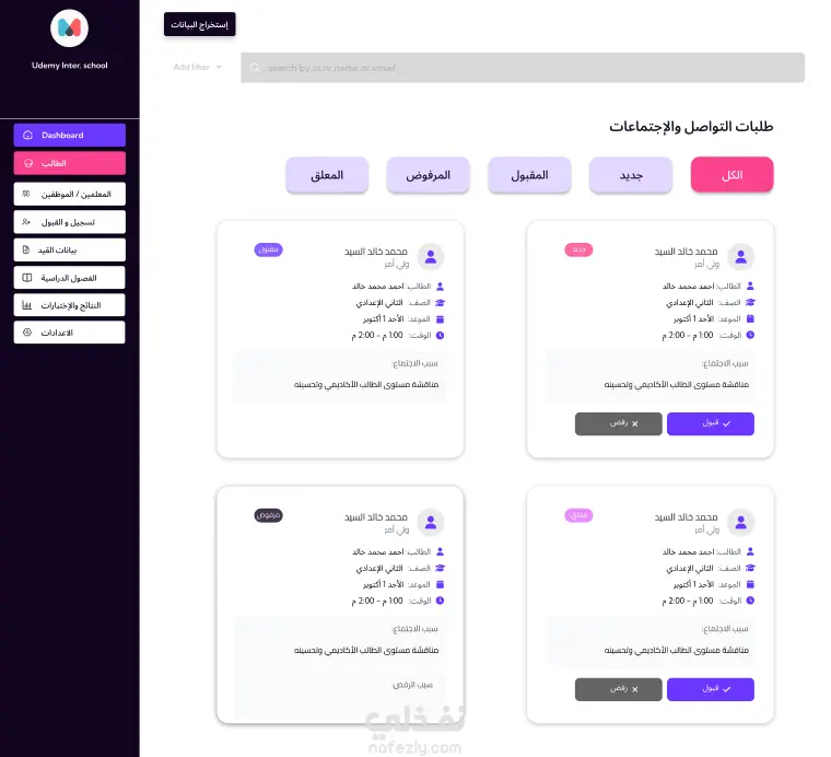 موقع مدرسة متكامل – تصميم Front-End