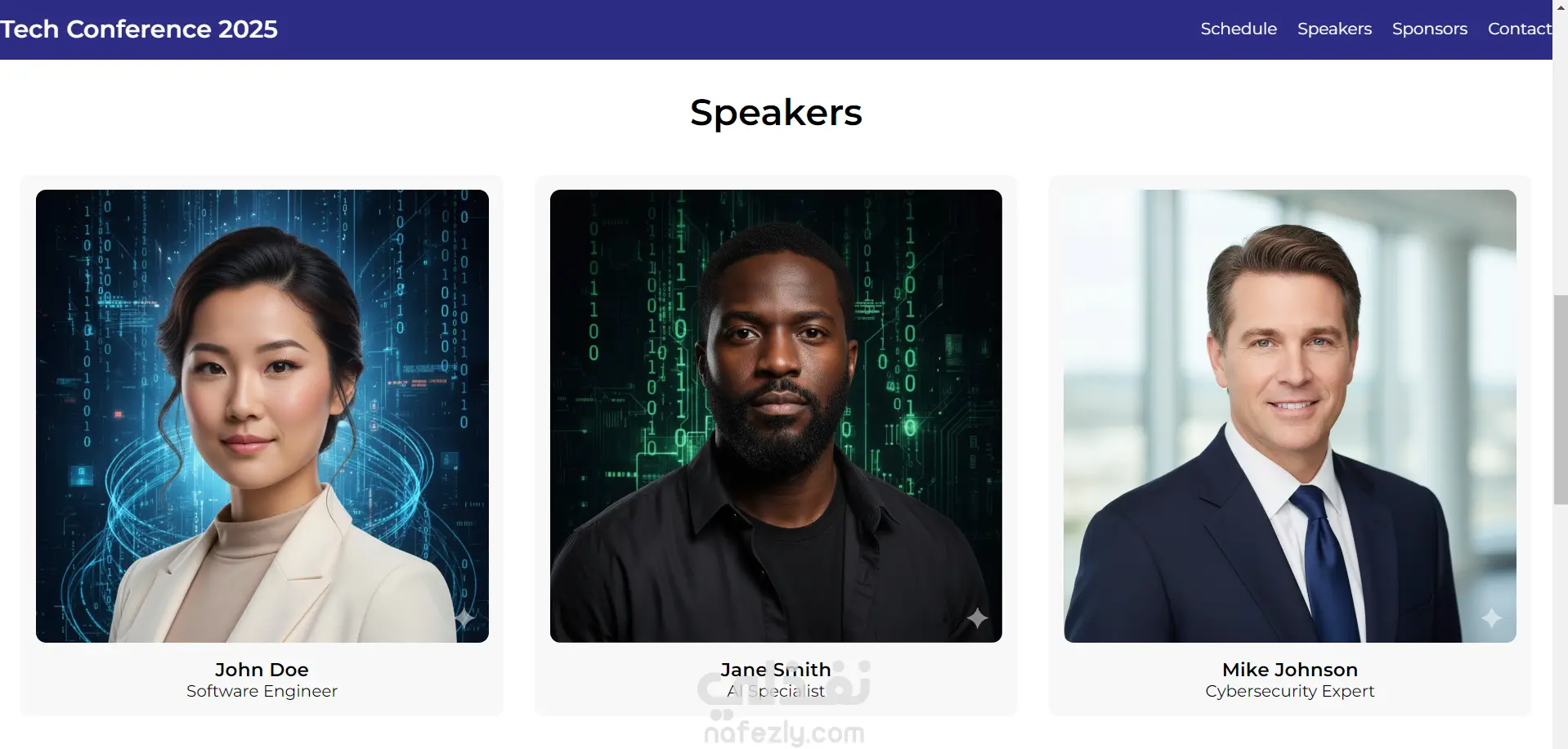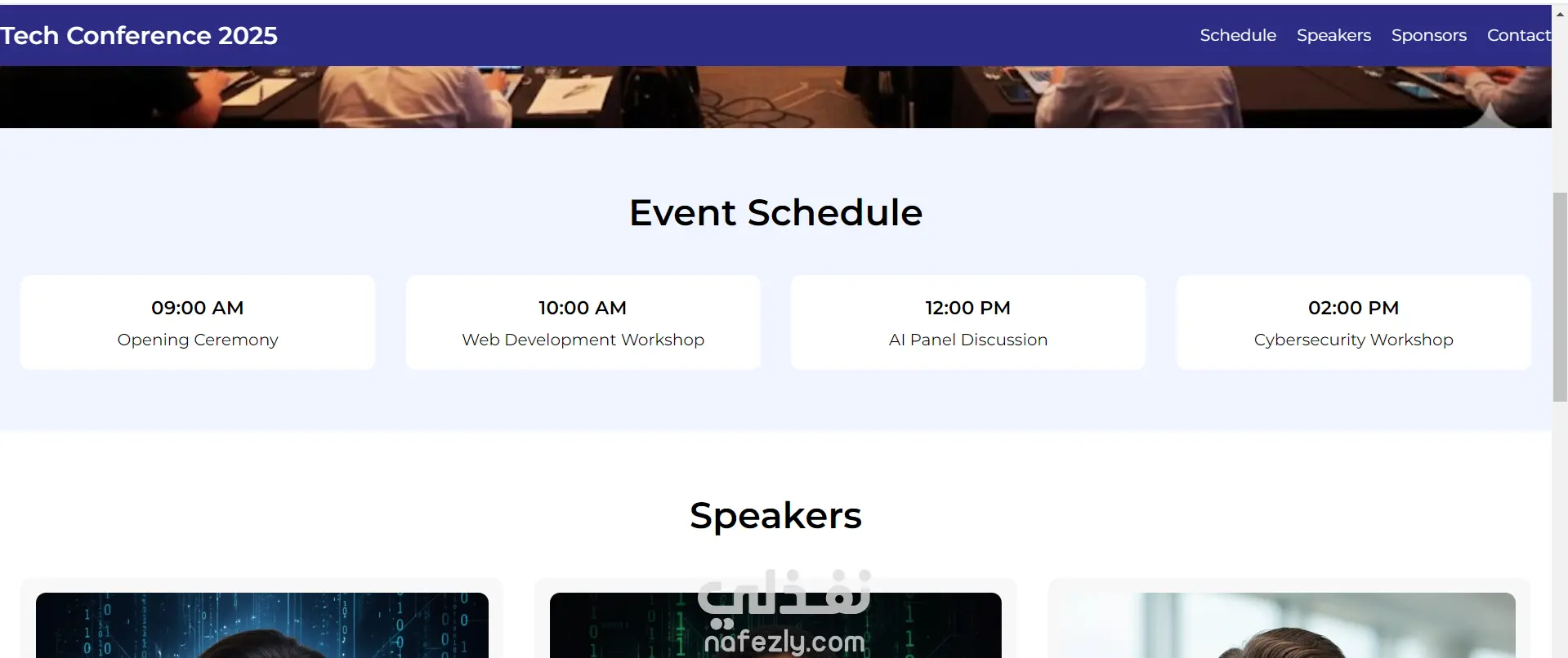 تم تصميم وتطوير Landing Page احترافية لمؤتمر Tech Conference 2025 كمشروع محاكاة.