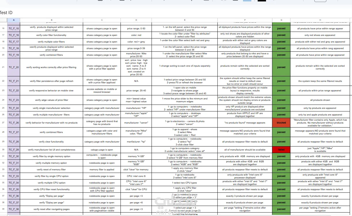 مانوال تيستنج لخاصيه البحث و الفلتر في موقع تسوق