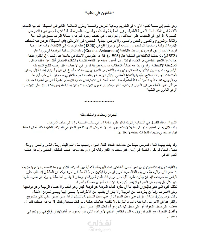 بحث من داخل كتاب القانون في الطب عن معنى البُحران