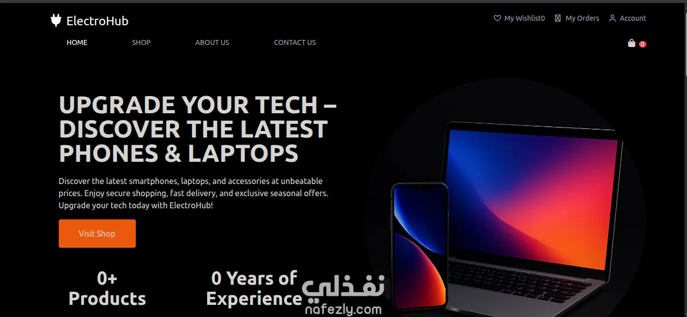 المساعدة في تصميم الصفحة الرئيسية، بما فيها شريط التنقل (Navbar) وقسم الـ Hero.