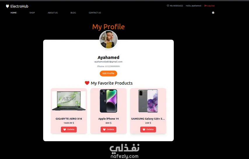 تمكين المستخدم من حفظ المنتجات المفضلة والوصول إليها بعد تسجيل الدخول.