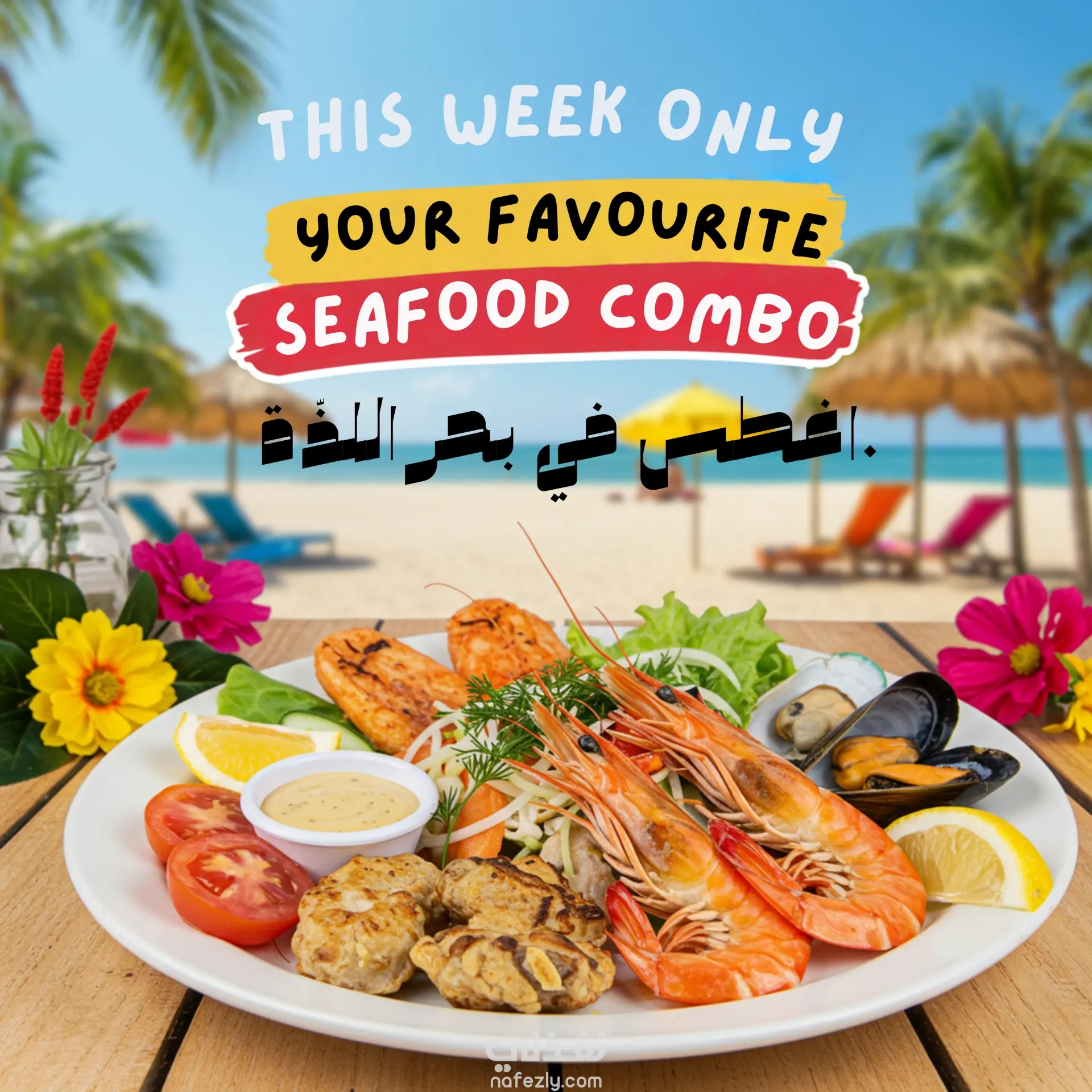 تم تصميم حملة سيفود كاملة تعتمد على ألوان البحر ودفء الغروب، مع صور واقعية للأطباق لإظهار جودة الطعام.