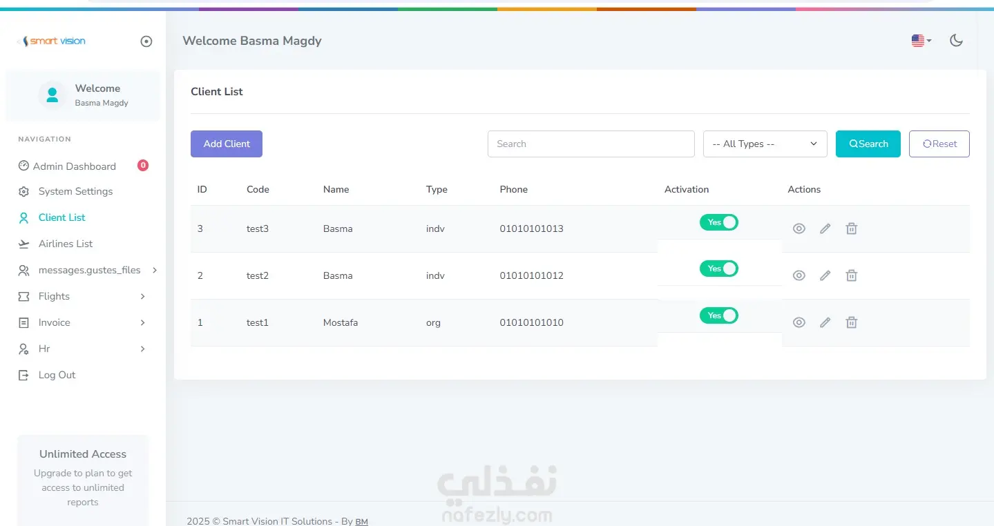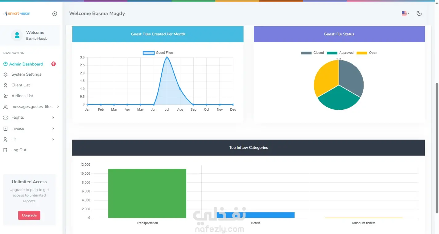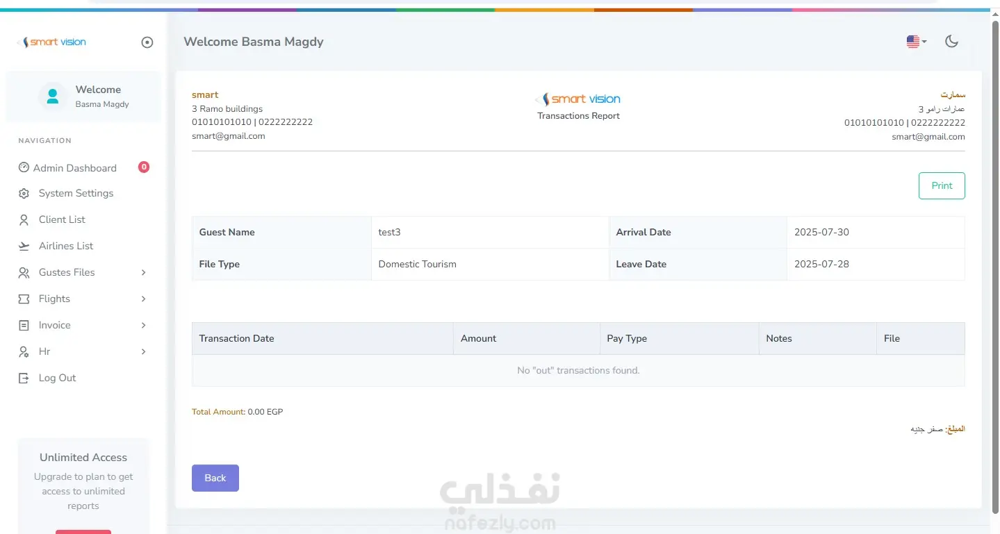 It helps travel agencies manage all their daily operations in one place — from clients and flight tickets to invoices, receipts, guest files, and financial accounts.
