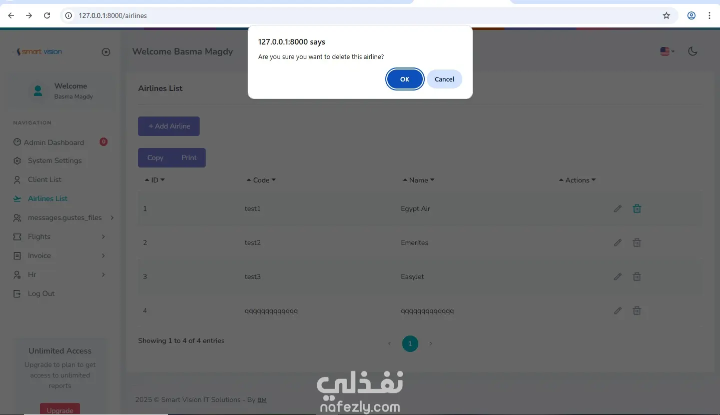 Stores all airline information (code, name, symbol) and allows adding, editing, and deleting airline records.