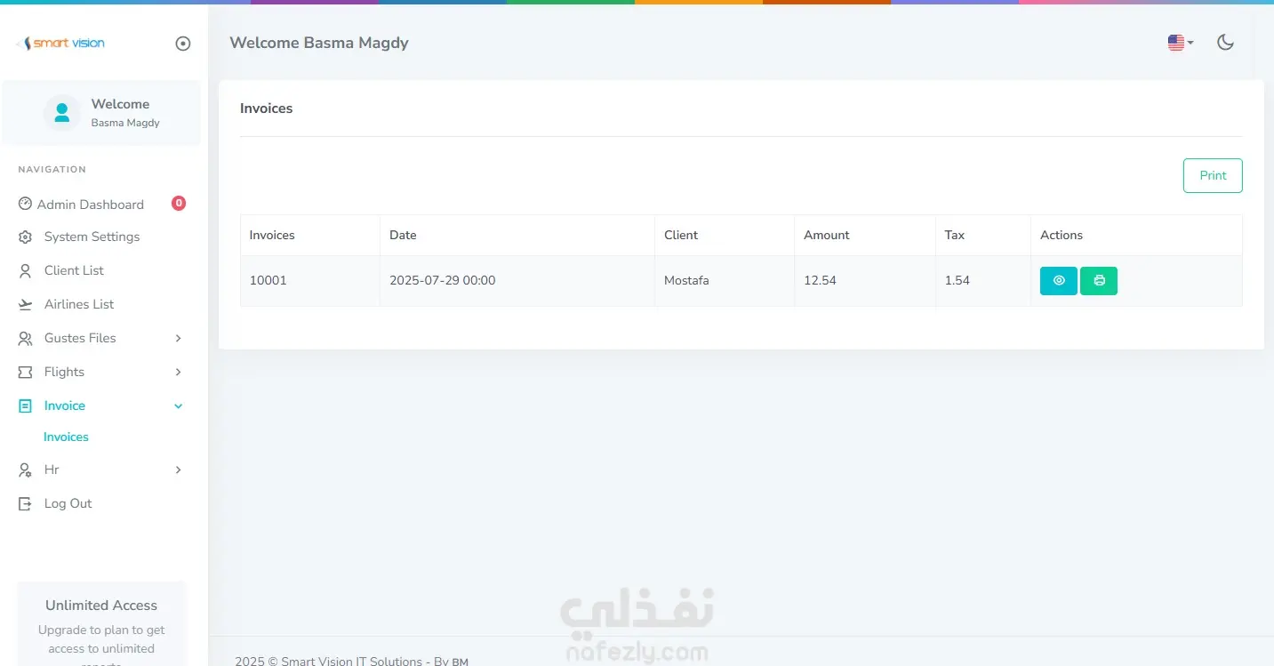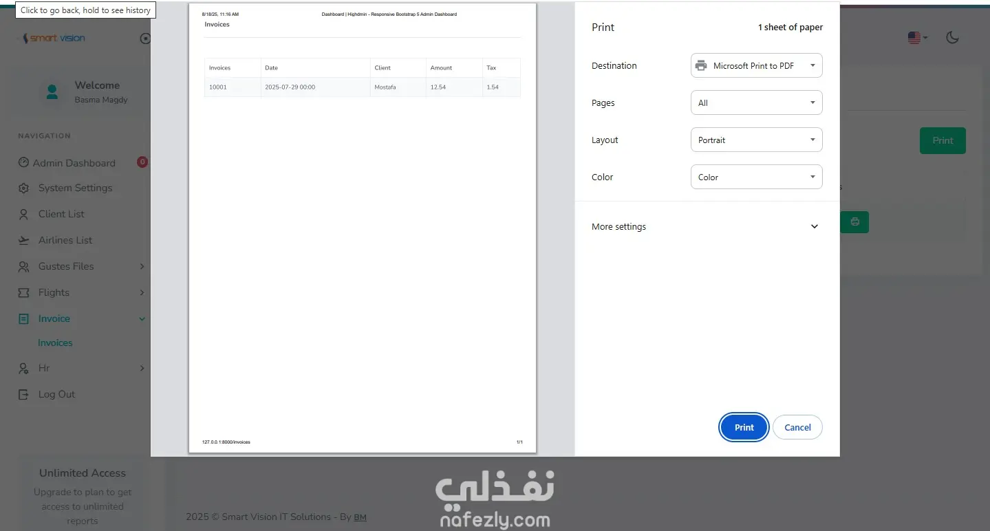 Auto-calculates VAT, totals, invoice codes, and supports printing in Arabic & English.