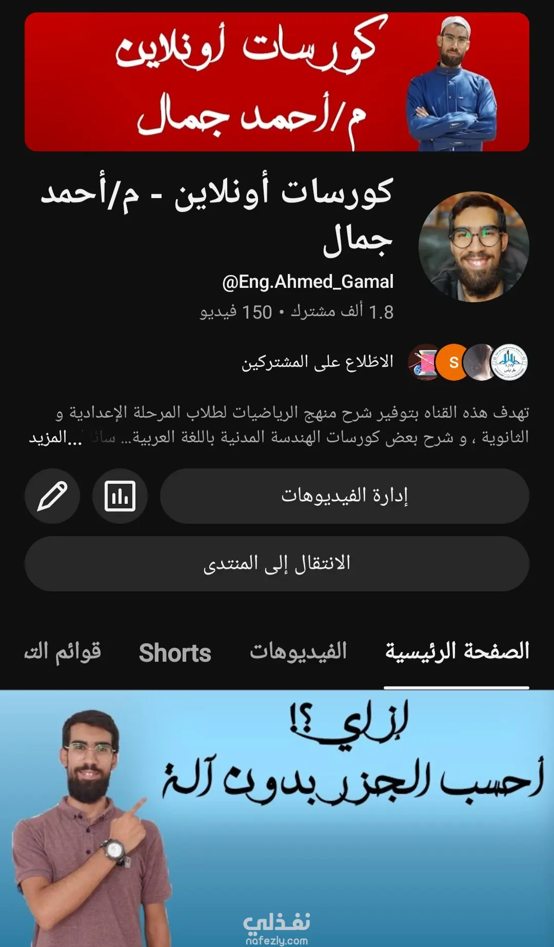 قناة كورسات أونلاين – م. أحمد جمال، منصّة تعليمية تهدف لتقديم شرح واضح ودقيق لمناهج الرياضيات لطلاب المرحلة الإعدادية والثانوية، بالإضافة إلى شروحات مهنية متخصصة في الهندسة المدنية باللغة العربية.