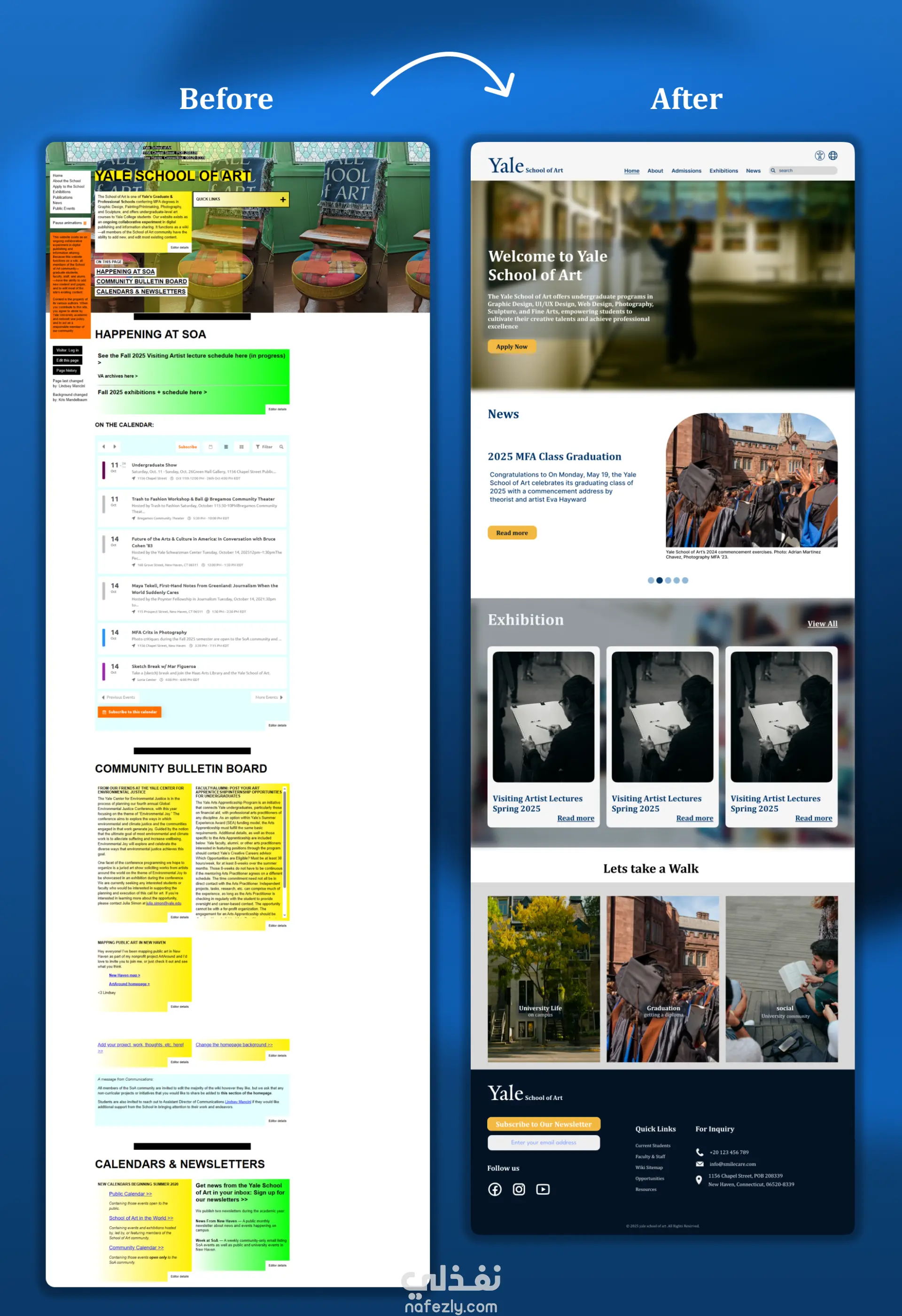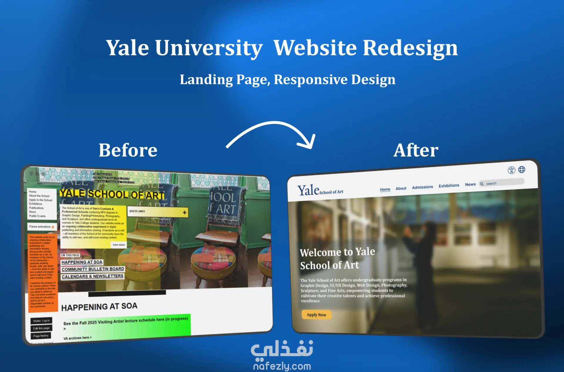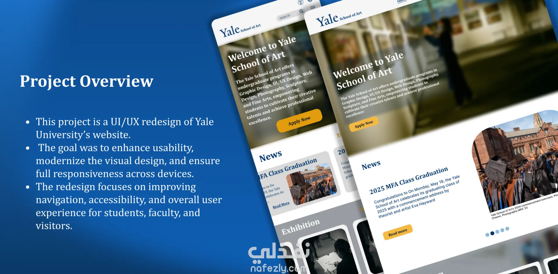 المشروع عبارة عن إعادة تصميم شاملة لتجربة المستخدم وواجهة موقع جامعة Yale.