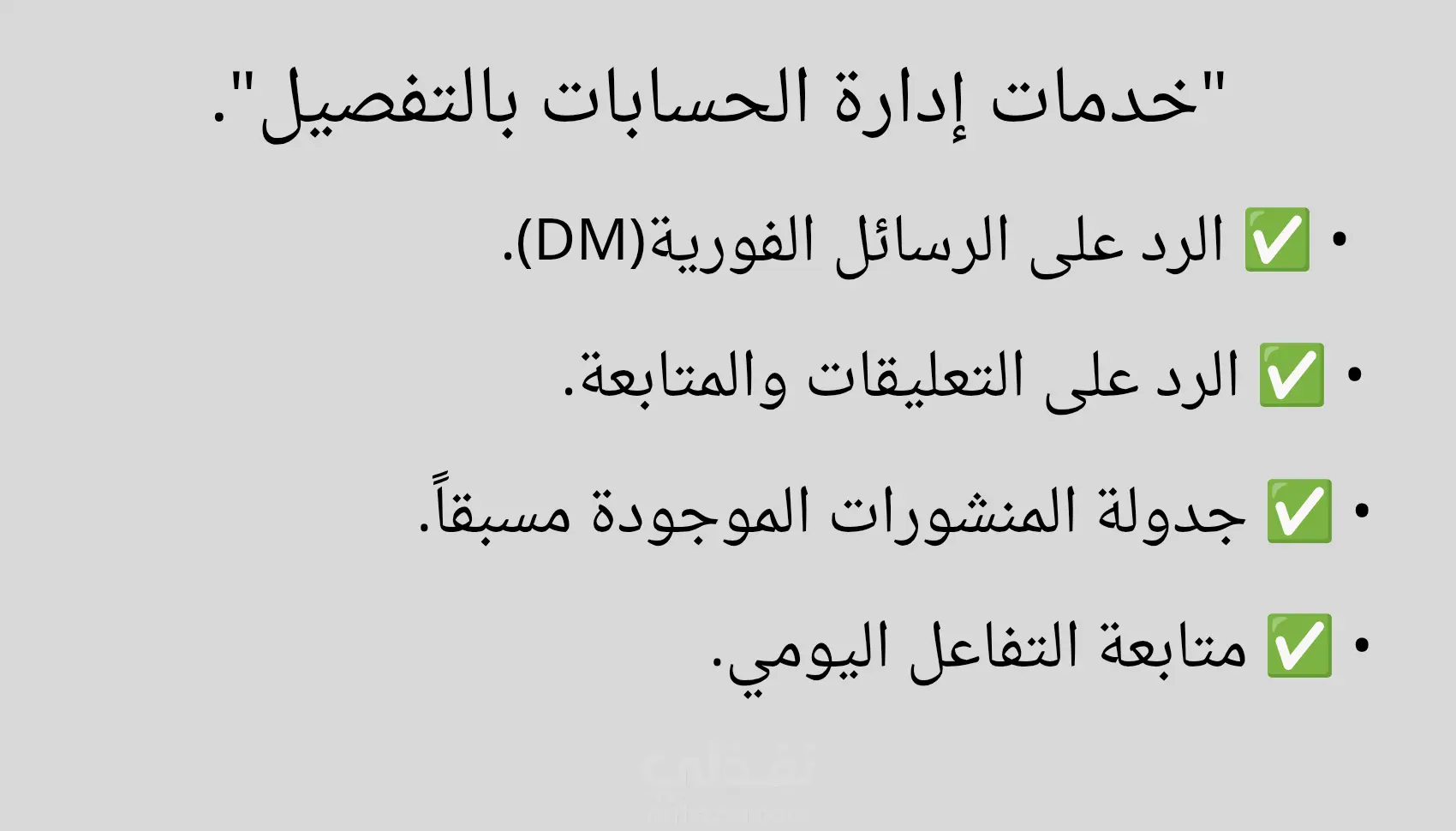 أنا محترف متخصص في إدارة حسابات السوشيال ميديا (Social Media Management) وتقديم خدمات المساعد الافتراضي (Virtual Assistant)، وأعمل بكفاءة عالية على منصة نفذلي. 1. 🚀 إدارة السوشيال ميديا: أعمل على بناء حضورك الرقمي وتنميته، ويشمل ذلك: إنشاء المحتوى: كتابة وتصميم محتوى جذاب وإبداعي لزيادة التفاعل. الإدارة اليومية: جدولة ونشر احترافي على كافة المنصات (فيسبوك، إنستغرام، تويتر، إلخ). التفاعل والرد: إدارة المجتمع والرد على الاستفسارات والتعليقات بسرعة واحترافية. التحليل والتقارير: تتبع الأداء وتقديم ملخصات شهرية للنمو والتحسين. 2. 💻 المساعد الافتراضي (VA): أقدم دعماً إدارياً وتنظيمياً شاملاً لتوفير وقتك وجهدك، ويشمل ذلك: تنظيم العمل: إدارة البريد الإلكتروني، وجدولة المواعيد والاجتماعات. إدخال وتنسيق البيانات: العمل بدقة على جداول البيانات والتقارير والمستندات. البحث: إجراء الأبحاث وجمع المعلومات المتعمقة في مجالات محددة. هدفي: تقديم حلول احترافية متكاملة لضمان نجاح عملك الرقمي وسير مهامك الإدارية بسلاسة وتنظيم.