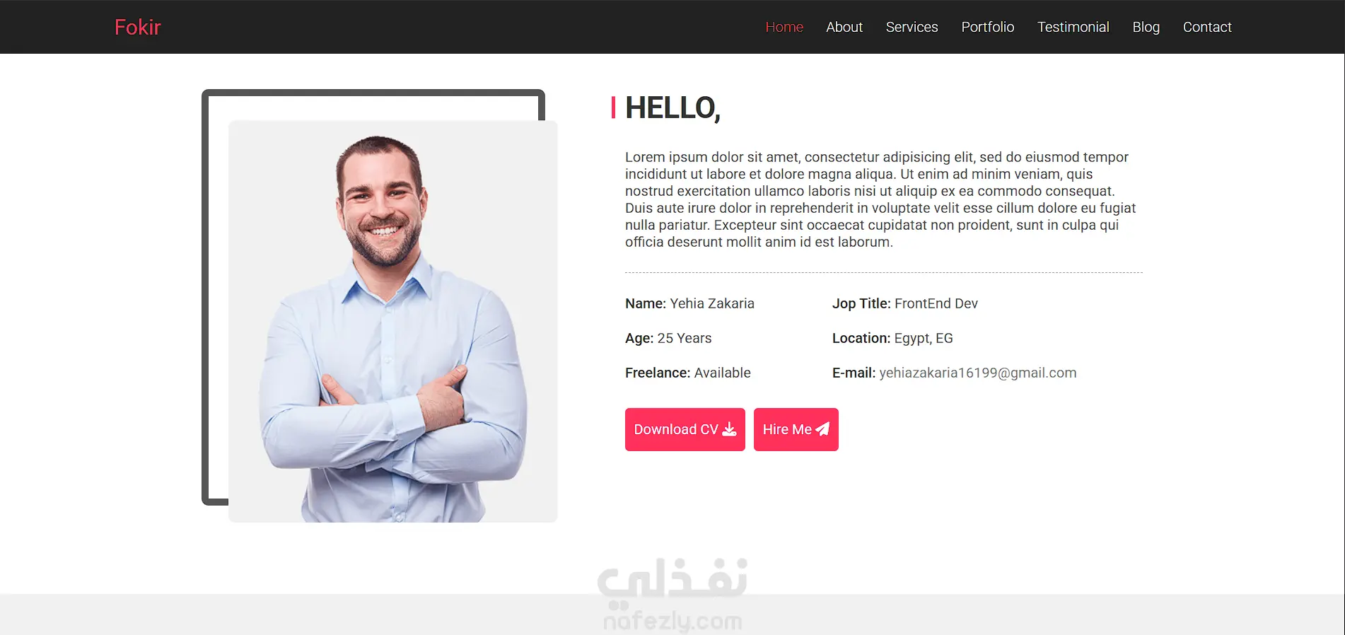 في هذا الموقع تم بناء بورتفوليو باستخدام HTML , CSS مكون من 7 أقسام 1- Home 2- About 3- Services 4- Portfolio 5- Testimonial 6- Blog 7- Contact وتم بناء أنيميشنز بسيطة جذابة وسلسة تعطي للمستخدم تجربة استخدام مريحة