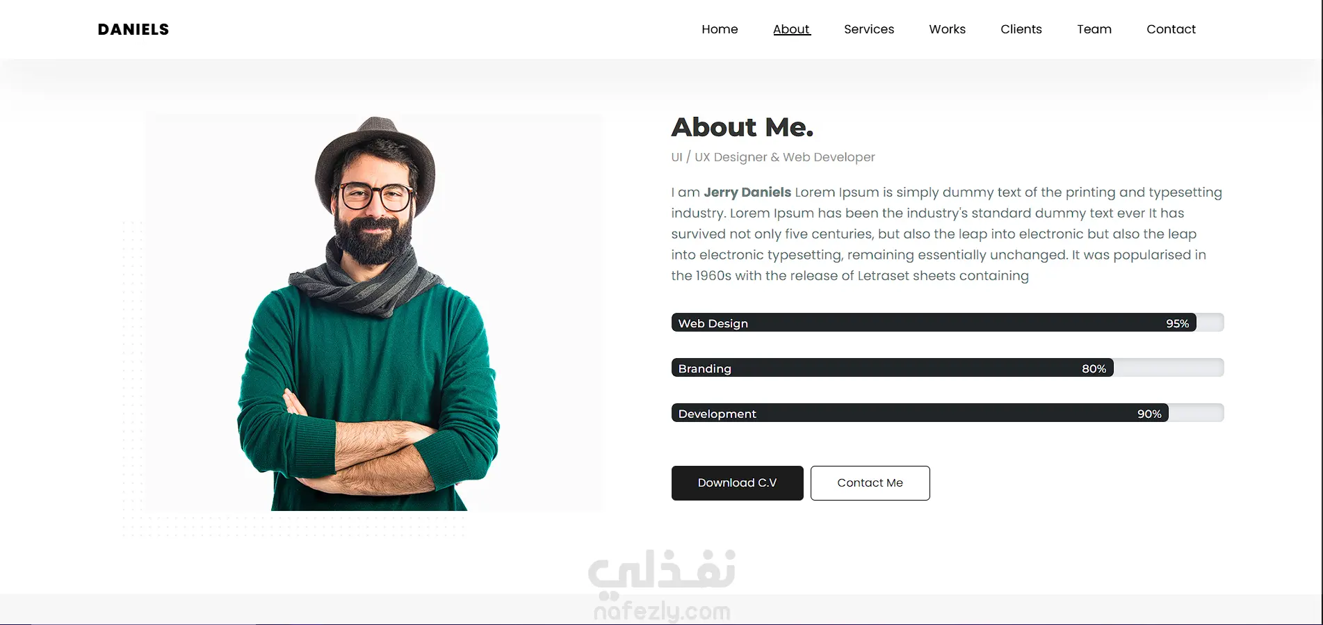 في هذا المضروع تم بناء بورتفوليو جذاب وأنيق ومصمم بطريقة عصرية باستخدام HTML,CSS مع استخدام Animations بسيطة وجذابة تعطي للمستخدم تجربة استخدام جميلة وأنيقة وجذابة ومكون الموقع من 7 أقسام : 1- Home 2- About 3- Services 4- Works 5- Clients 6- Team 7- Contact