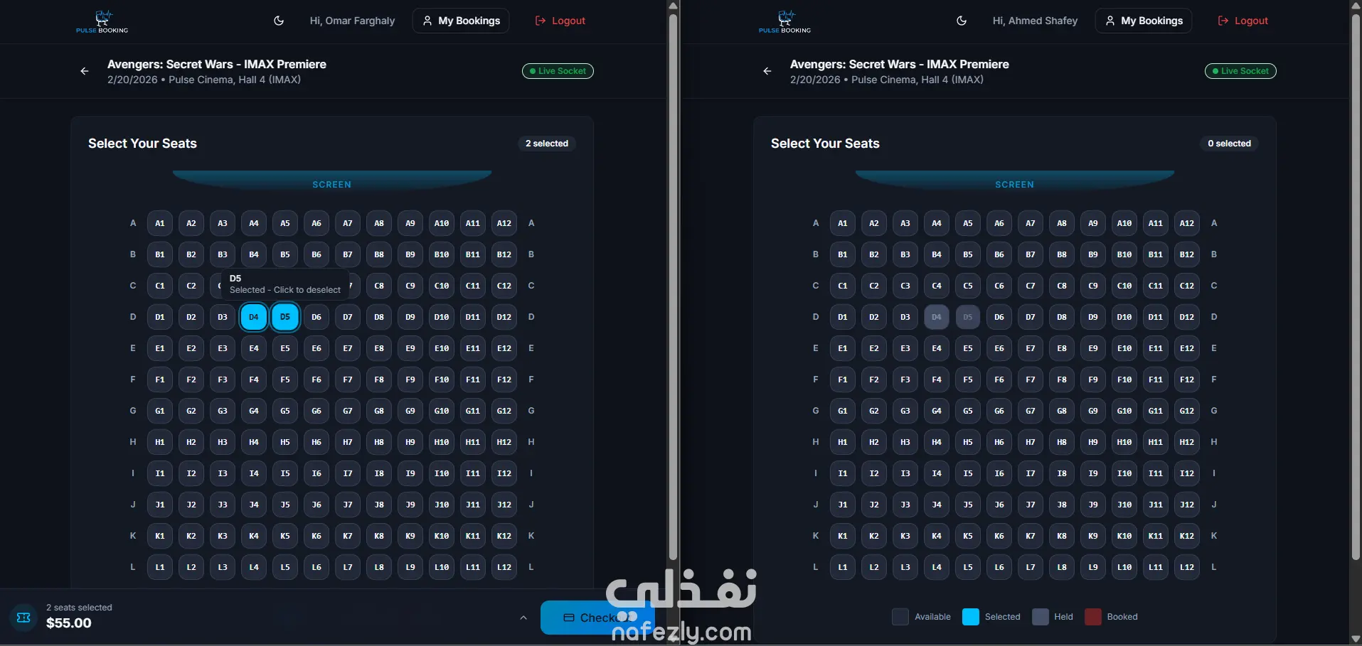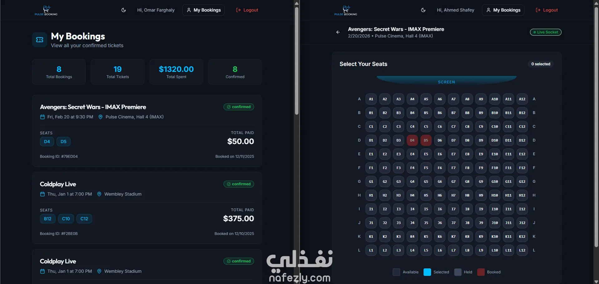 تواجه العديد من أنظمة الحجز التقليدية مشكلة "الحجز المزدوج" (Double Booking) وبطء الاستجابة عند زيادة عدد المستخدمين، مما يؤدي إلى خسارة العملاء وتجربة استخدام سيئة. كان الهدف هو بناء نظام يتجاوز هذه العقبات ويقدم تجربة فورية ومستقرة. قمت بتطوير "Pulse Booking"، وهو محرك حجز لحظي مصمم ليكون "Performance Proof". اعتمدت في بنائه على معمارية هجينة وذكية تضمن الأداء العالي: - السرعة واللحظية: استخدام Socket.io لنقل حالة المقاعد (متاح/محجوز) لجميع المستخدمين في أجزاء من الثانية دون الحاجة لتحديث الصفحة. - إدارة التزامن (Concurrency Control): دمج Redis لإدارة عمليات "قفل المقاعد" (Locking) المؤقتة بسرعة فائقة، مما يمنع تماماً أي تضارب في الحجوزات حتى تحت الضغط العالي. - الاستقرار وقوة البيانات: الاعتماد على MongoDB مع تصميم Schema مدروس و Indexing دقيق لضمان استرجاع البيانات بسرعة، مع معاملات ذرية (Atomic Transactions) لحماية سلامة البيانات المالية. - تجربة مستخدم انسيابية: واجهة أمامية مبنية بـ React و Tailwind CSS، توفر تجربة بصرية غنية وسريعة الاستجابة (Fully Responsive) على جميع الأجهزة. - الأمان والحماية: نظام صلاحيات متقدم (RBAC) يفصل بين لوحة تحكم الإدارة والمستخدمين، مع طبقات حماية ضد هجمات الويب. التقنيات المستخدمة: MERN Stack (MongoDB, Express, React, Node.js) | Redis | Socket.io | Tailwind CSS. نظام حجز متين، قابل للتوسع (Scalable)، ويقدم تجربة استخدام سلسة.